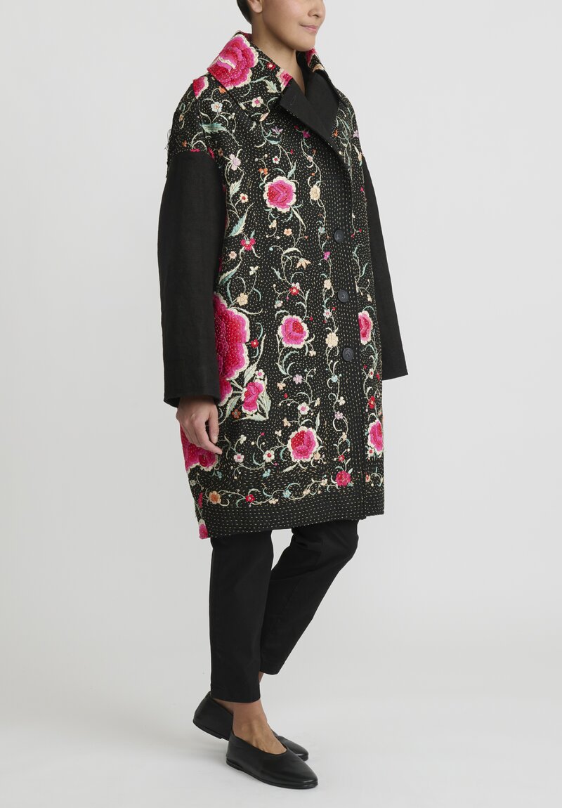 Silk Antique Piano Shawl Cocoon Coat in Black and Rose Pink