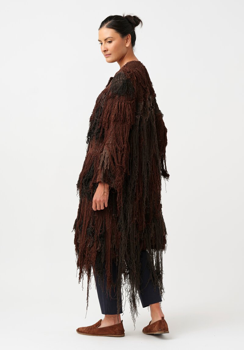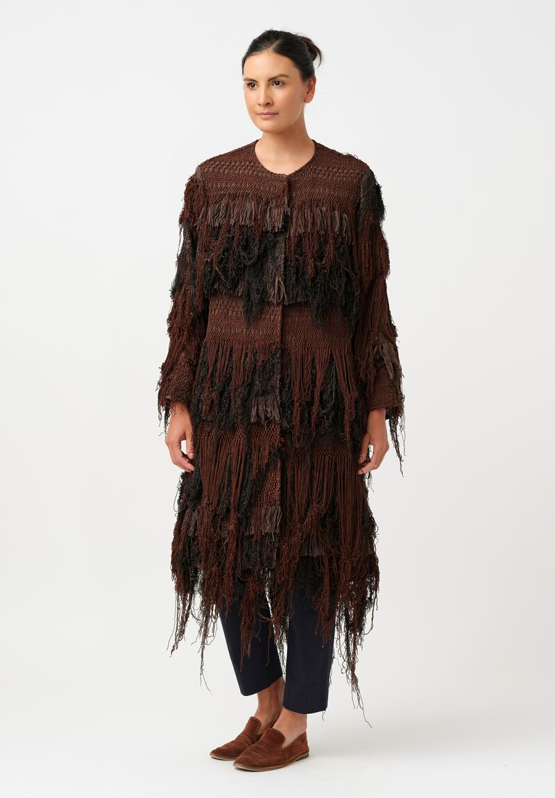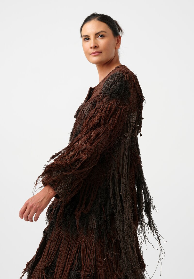 Silk Tanita Fringe Coat in Brown & Charcoal Black