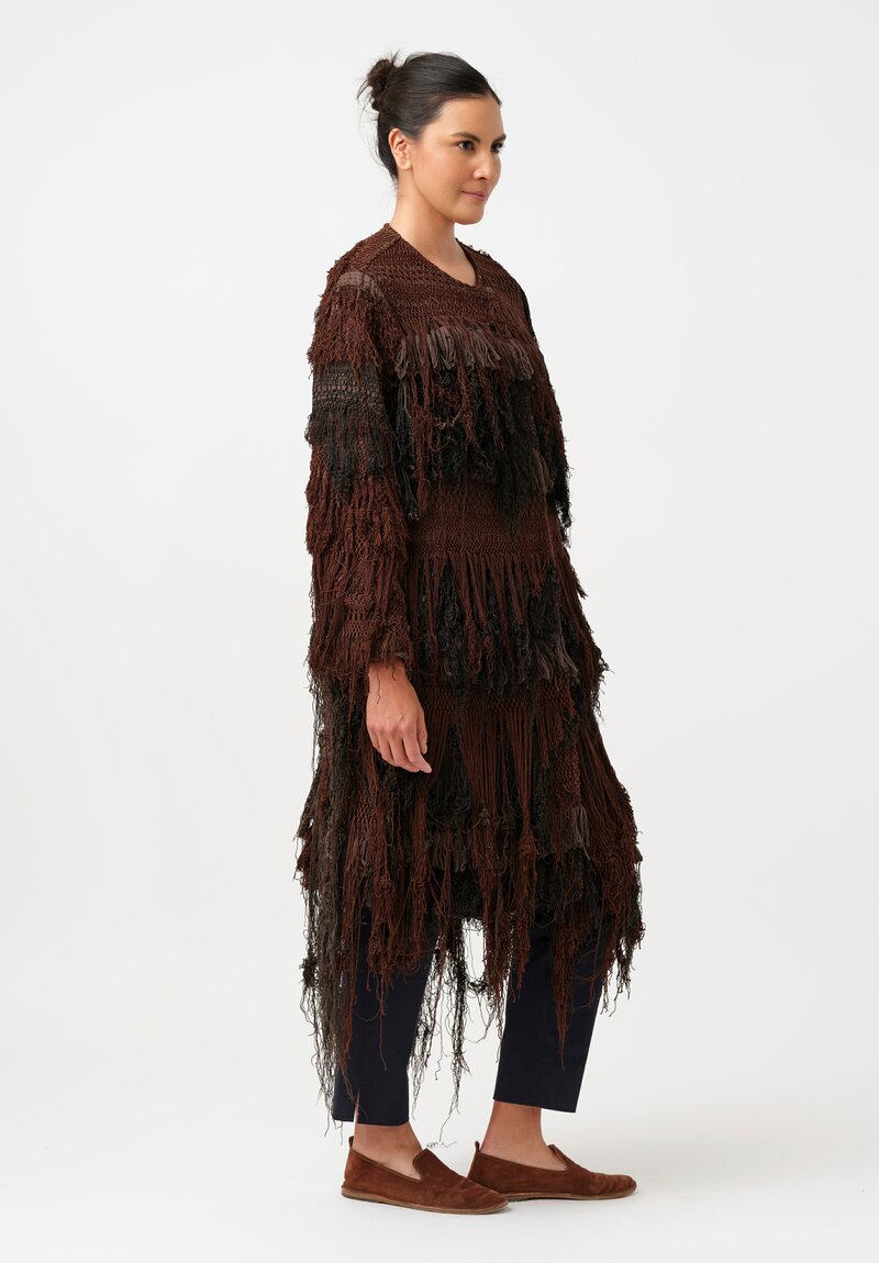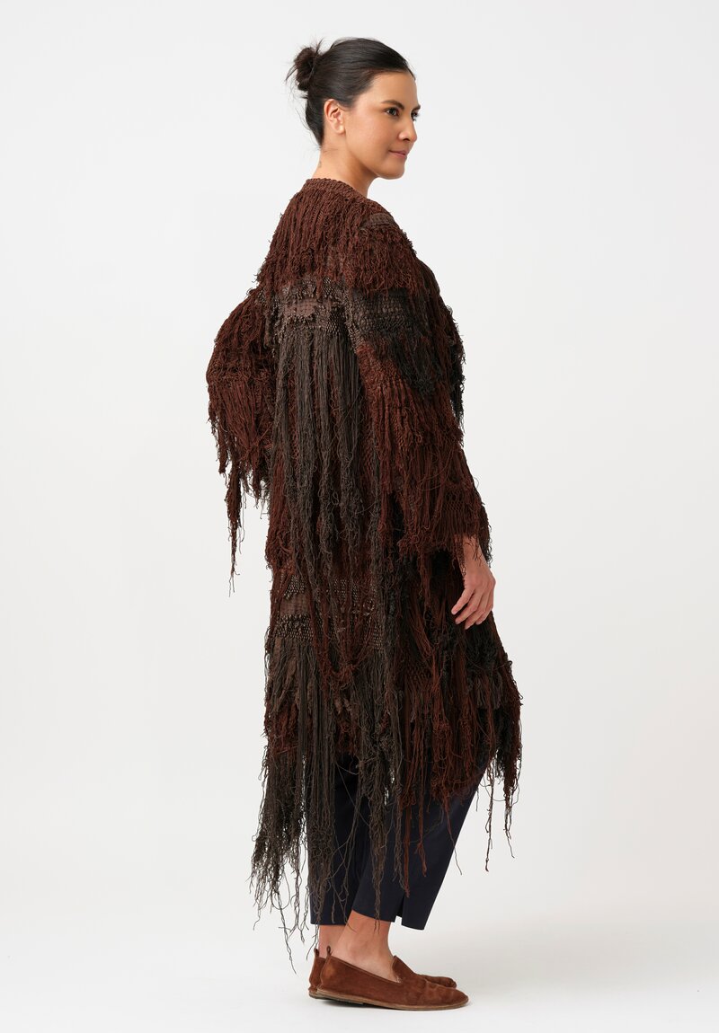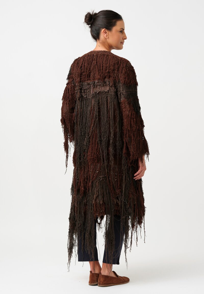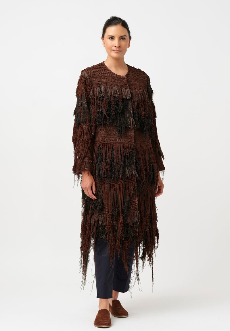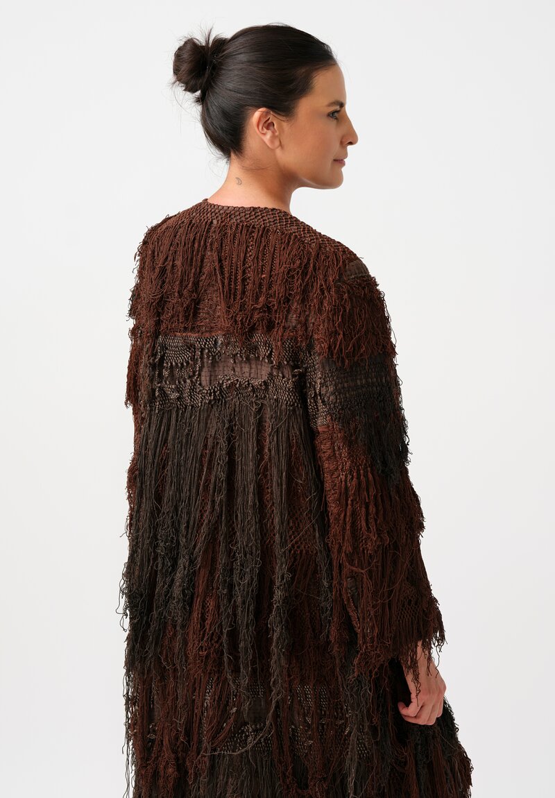 By Walid Silk Tanita Fringe Coat in Brown & Charcoal Black