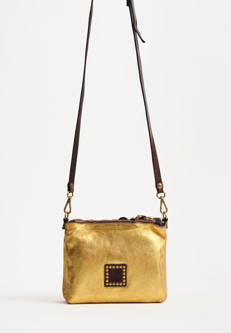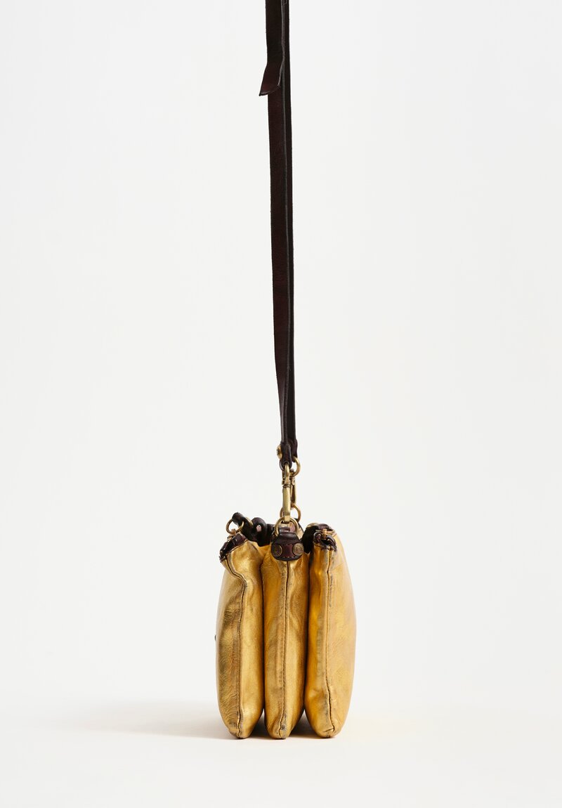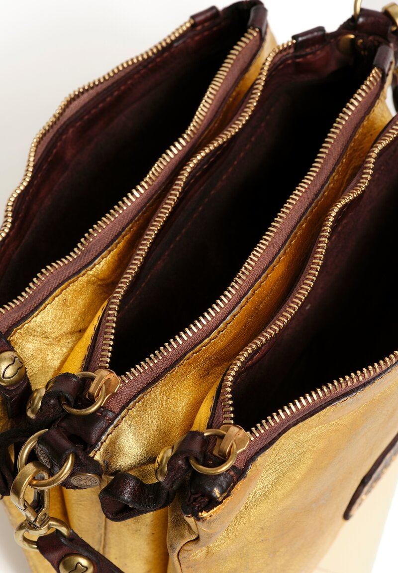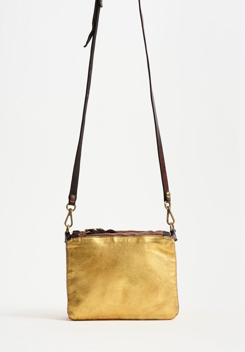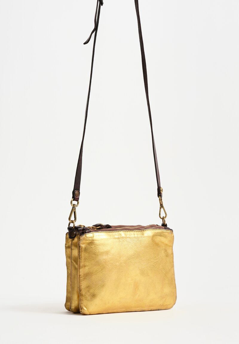 Campomaggi Laminated Leather Triple Compartment Crossbody Bag in Gold