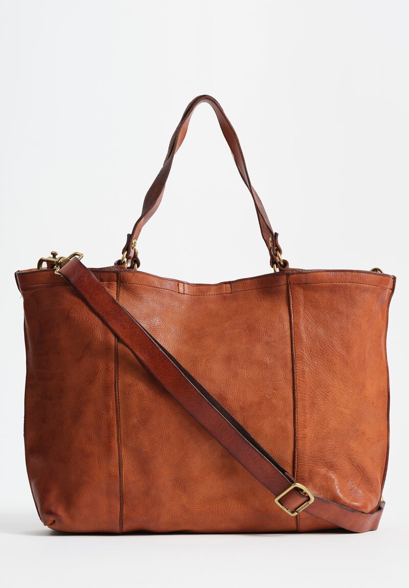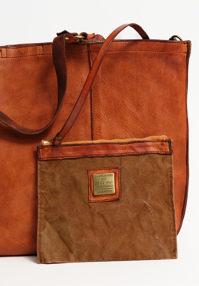 Campomaggi Leather "Calipso" Shopping Bag in Cognac Brown