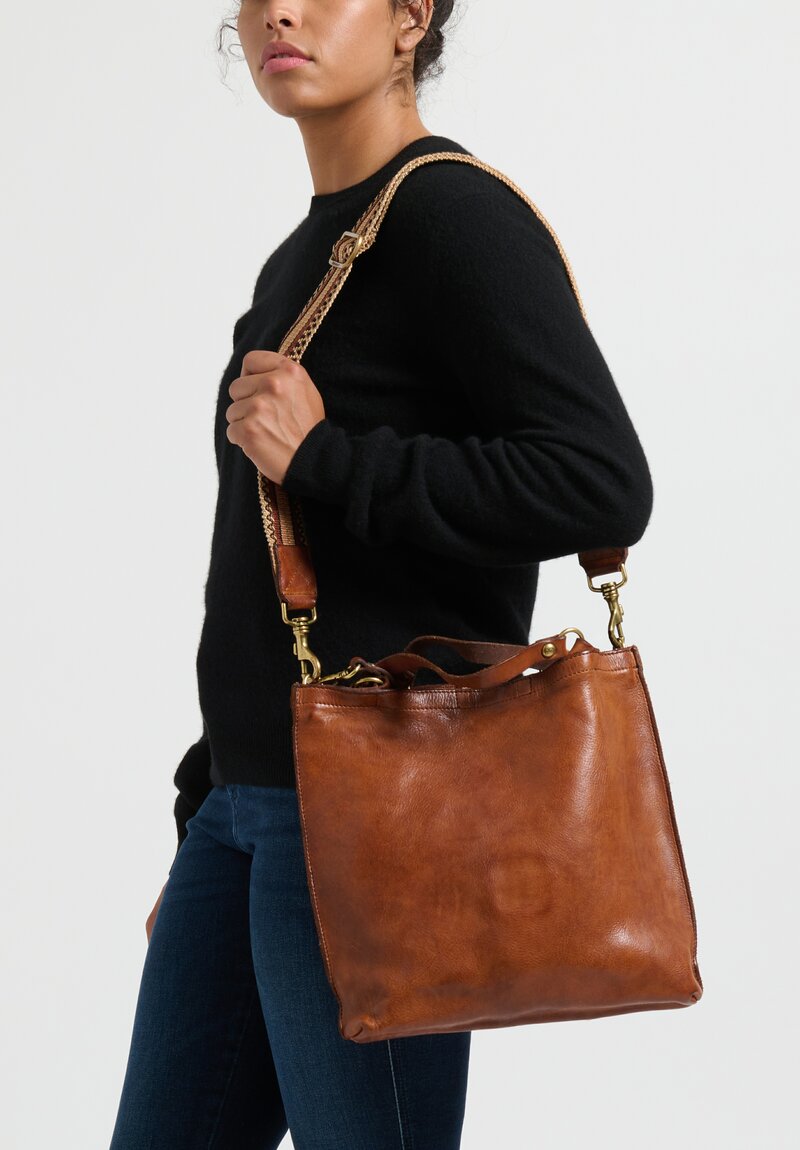 Campomaggi Leather Shopping Bag with Photostrap in Cognac Brown