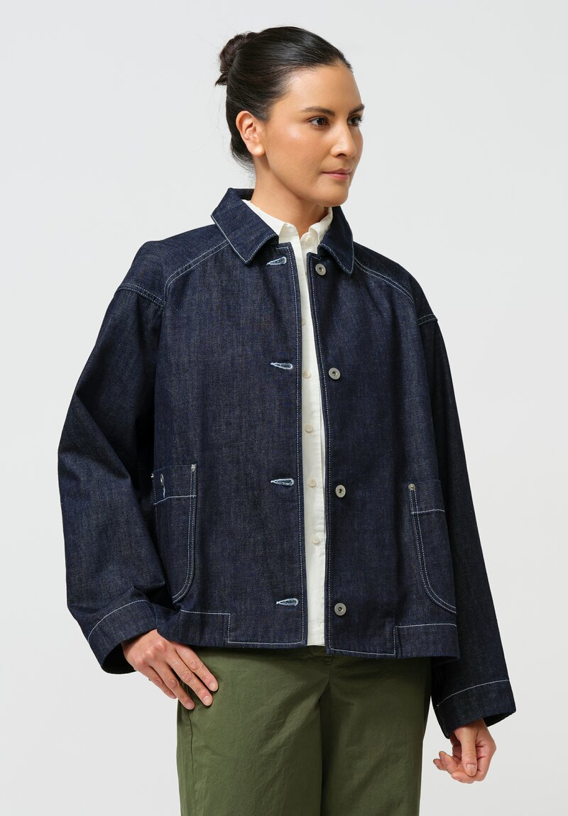 Raw Denim Drays Travail Jacket in Indigo Blue