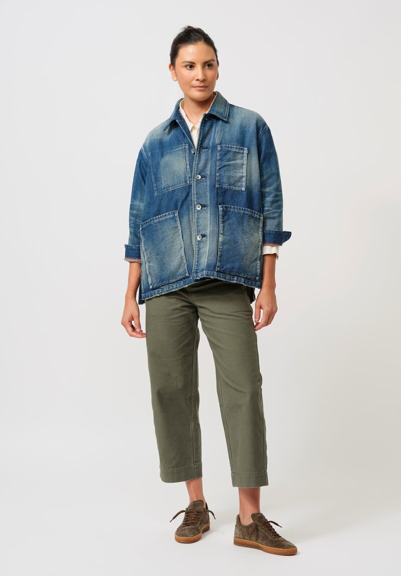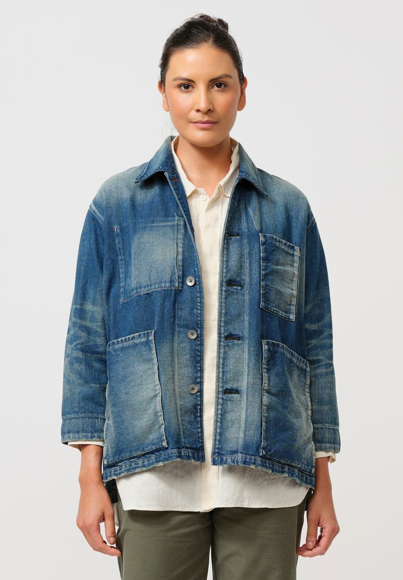 Cotton & Linen Denim "Champetre Bouquet" Jacket in Indigo