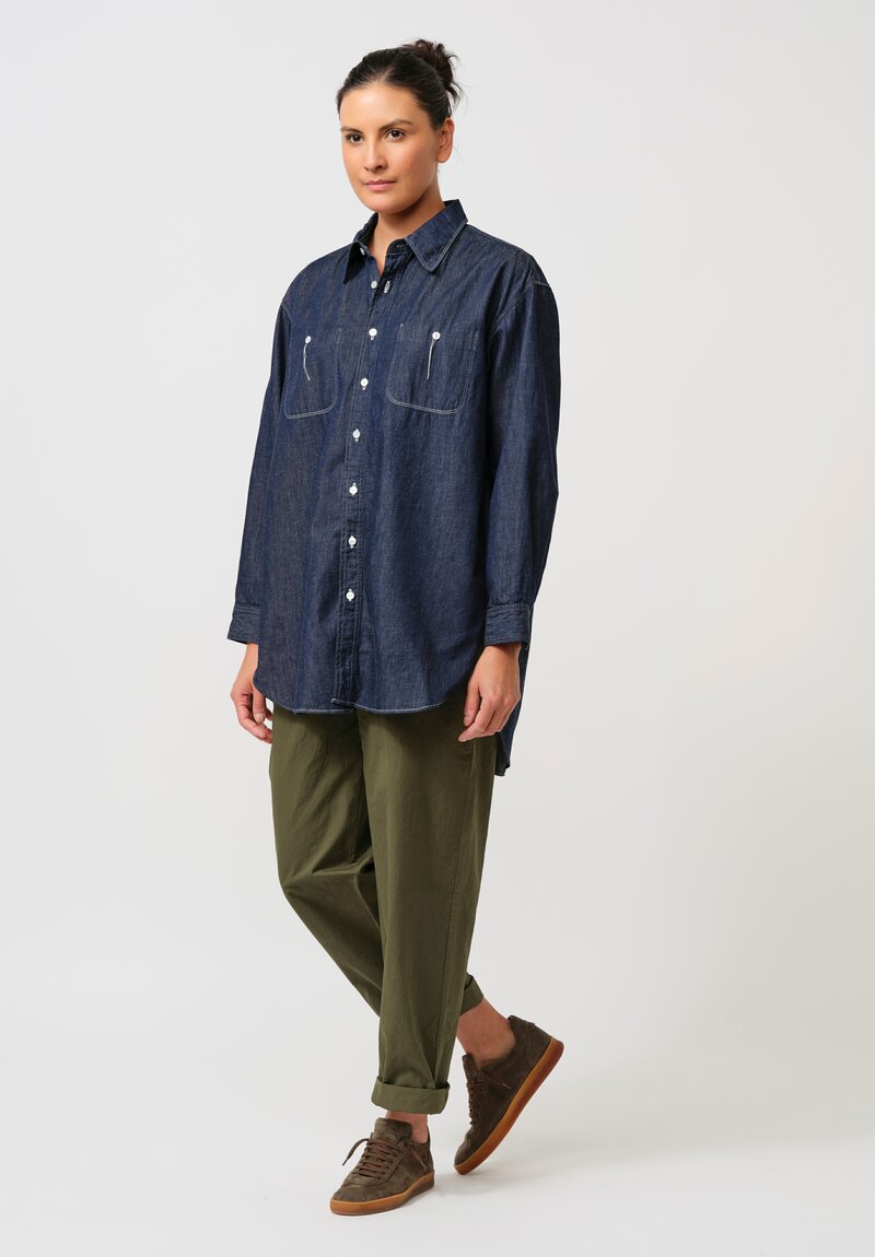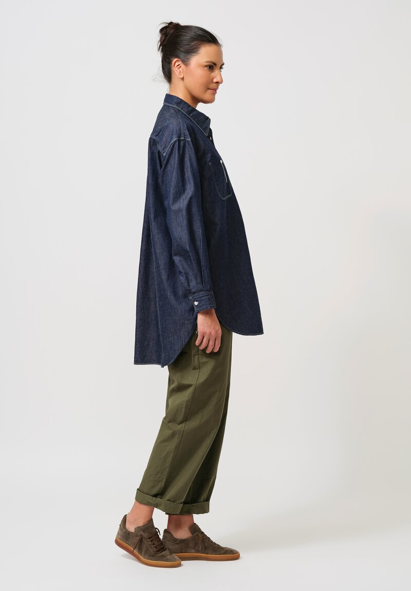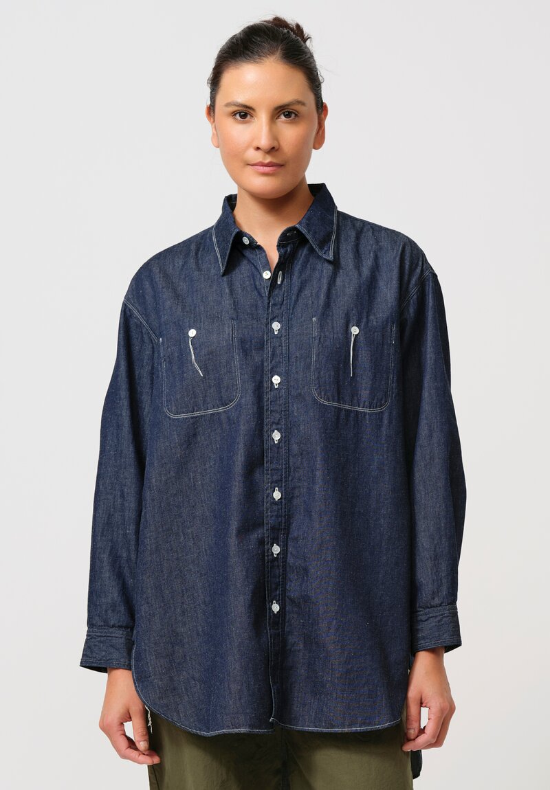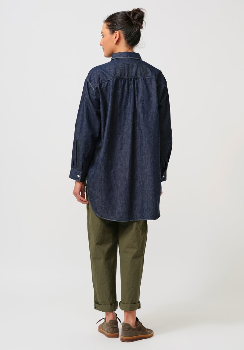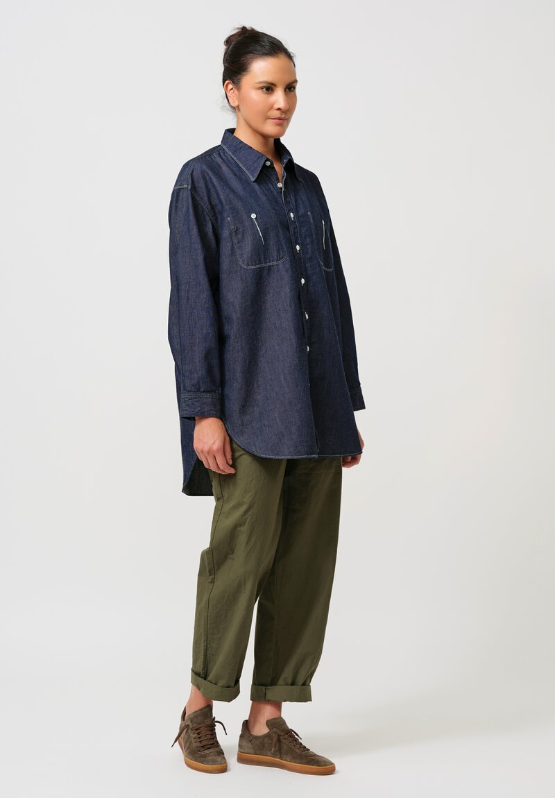 Cotton & Linen Denim "New Wave" Shirt in Dark Indigo