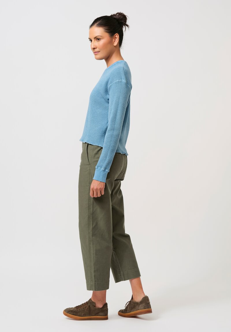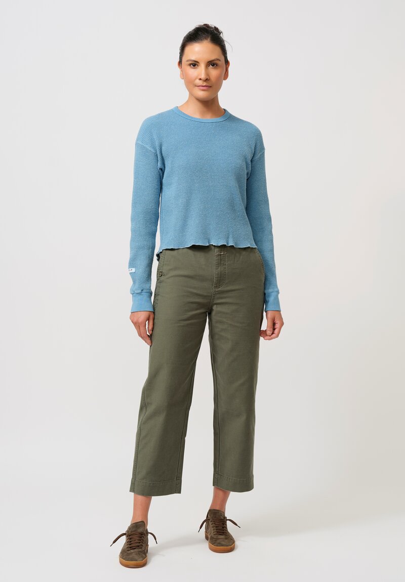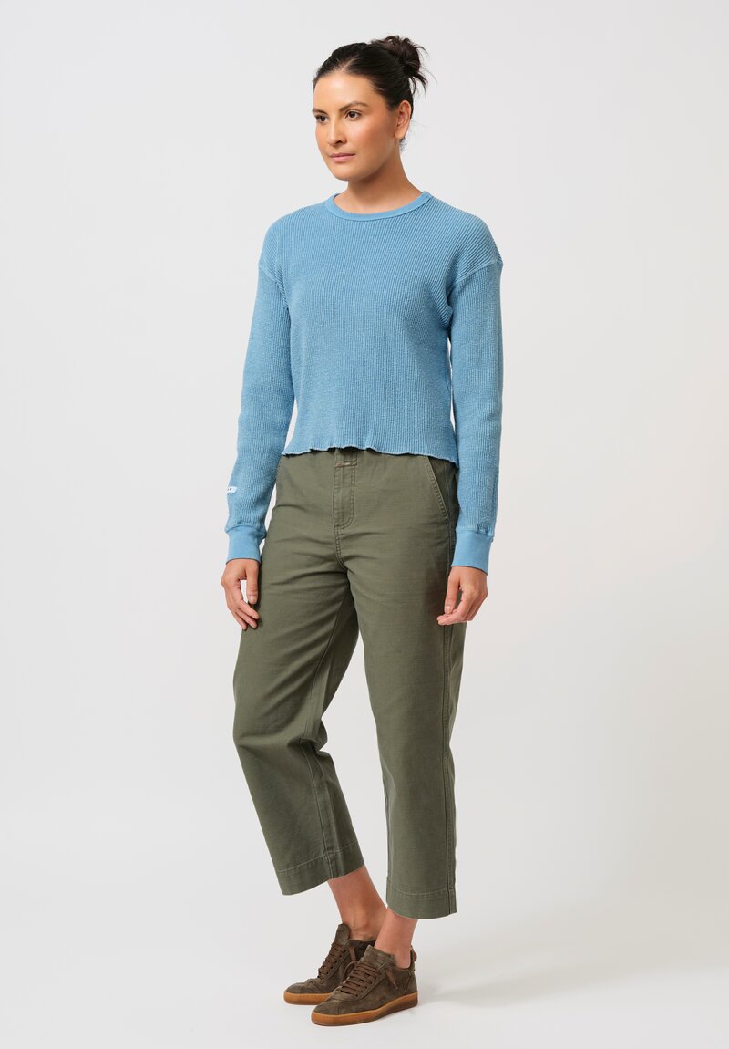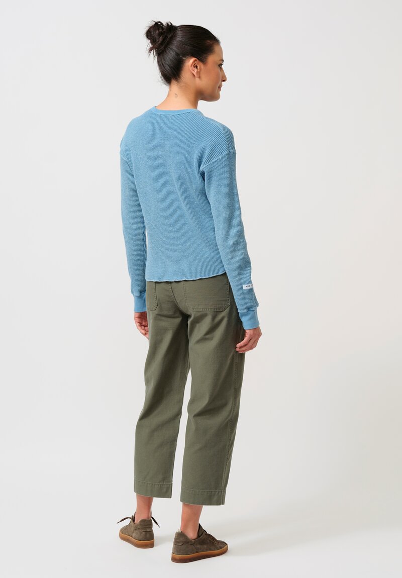 Cotton Silk "Noel" Waffle Long Sleeve Tee in Asagi Blue