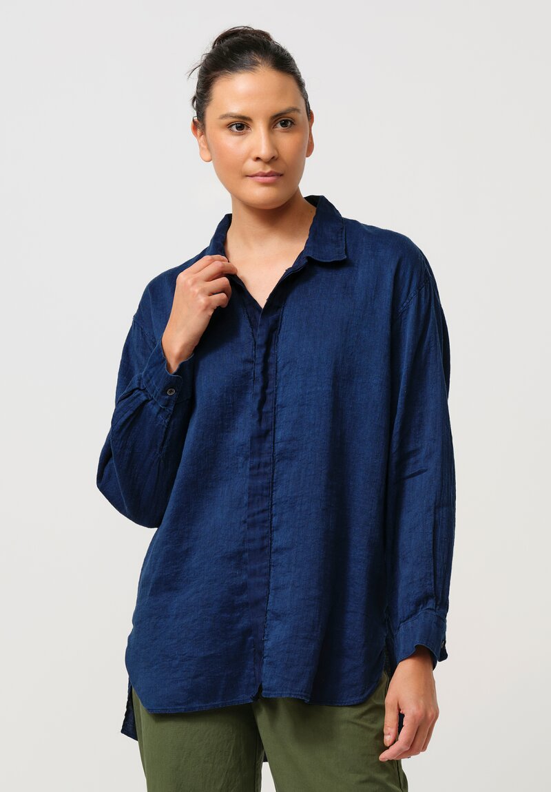 Hemp & Cotton "Champetre Bouquet" Shirt in Indigo