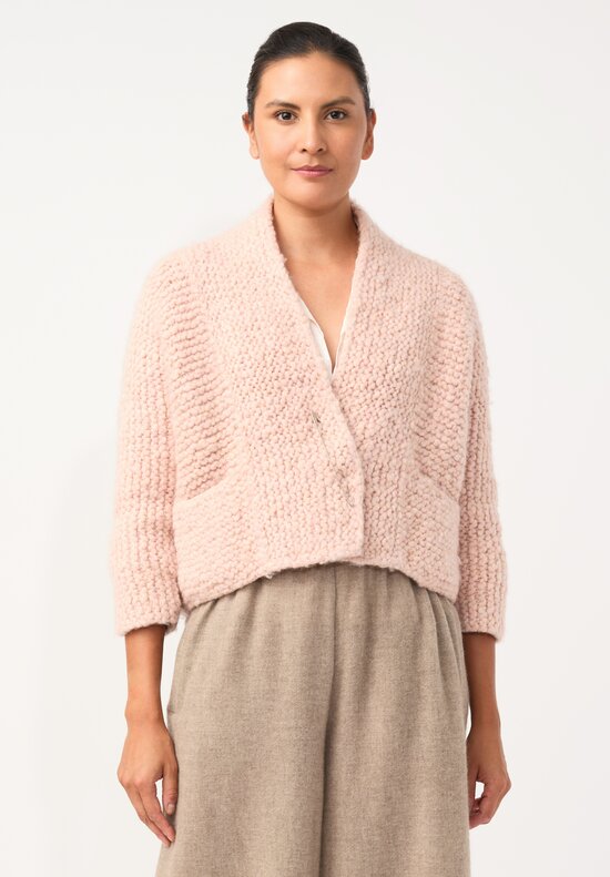 Special note: This piece has hand crocheted buttons, giving it that signature Daniela Gregis look. They are made by the team in Bergamo, which includes Daniela and her daughter, in their downtime. Each one is crocheted from cotton or wool and takes 40 minutes to make. They are double sided like cufflinks and should be removed for washing.