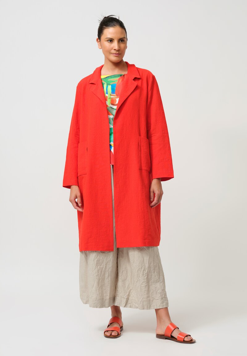 Daniela Gregis Linen Punto Bianco Coat in Rosso Red