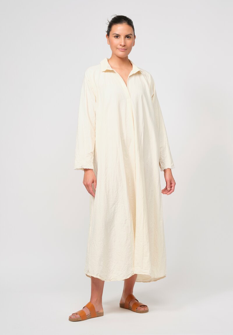 Daniela Gregis Washed Cotton Abito Spicchi Colletto Dress in Panna Cream