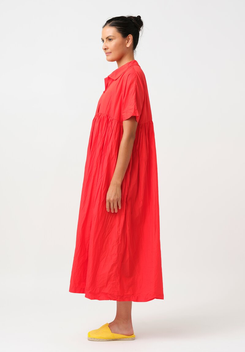 Daniela Gregis Washed Cotton Aria Lungo Dressin Rosso Red