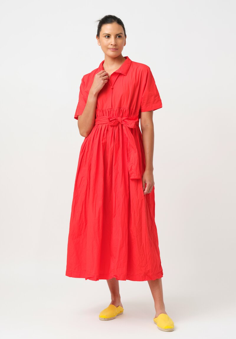 Washed Cotton Aria Lungo Dressin Rosso Red