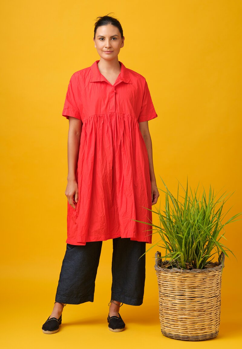 Daniela Gregis Washed Cotton Aria Medio Dress in Rosso Red