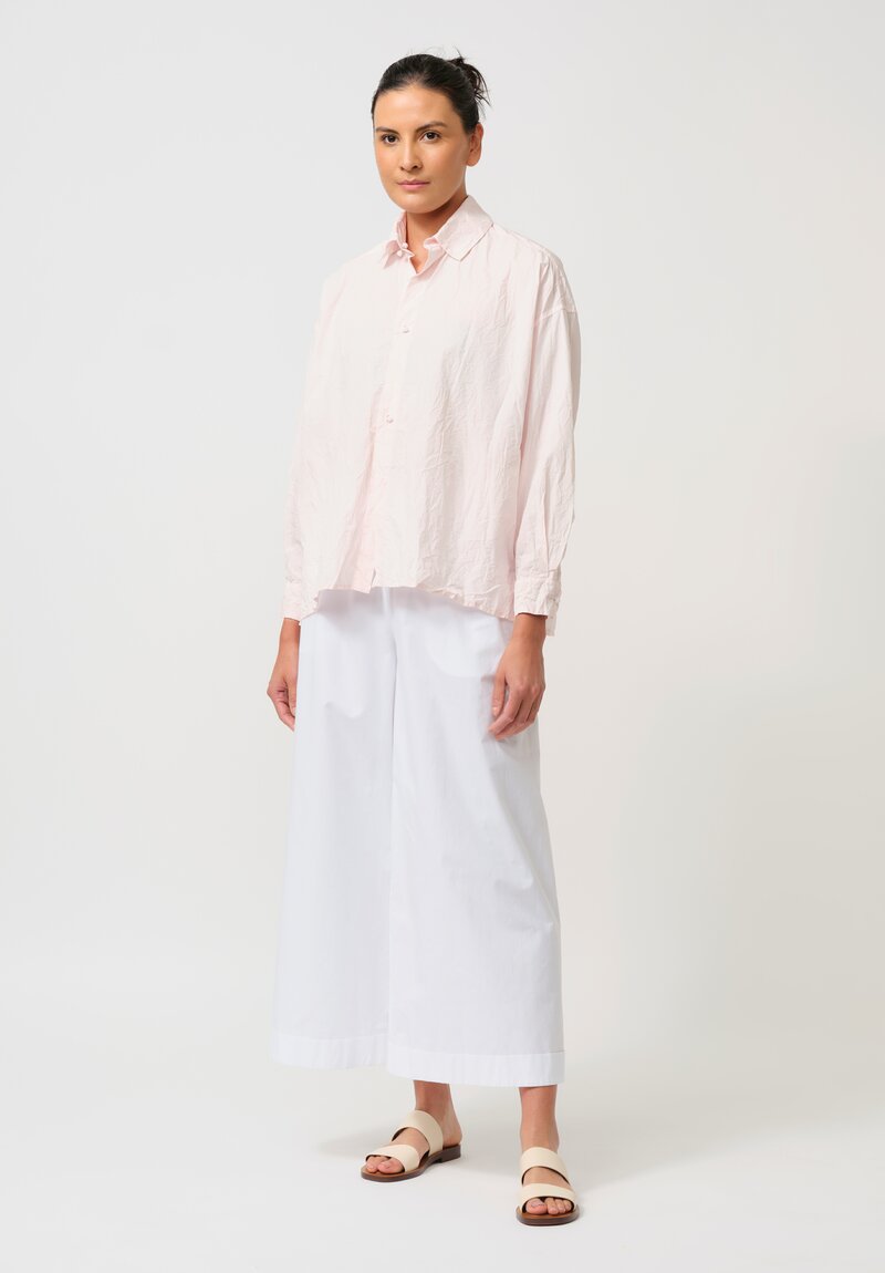 Washed Cotton Cropped Uomo Larga Shirt in Pale Pink