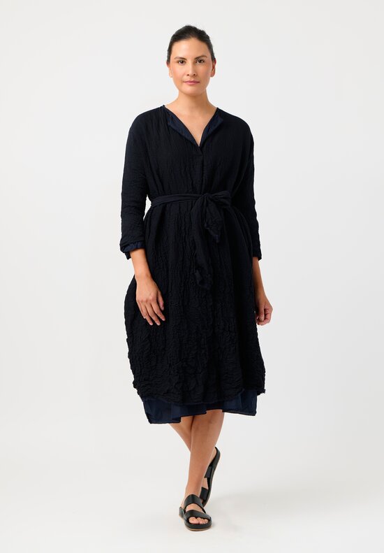 Embracing an updated artisanal country feel, Daniela Gregis features textured, voluminous silhouettes that allow a body to paint, work and play. Her dyeing is made using natural colors with shades that are taken from the most evocative natural landscapes creating an intellectual and soulful look.