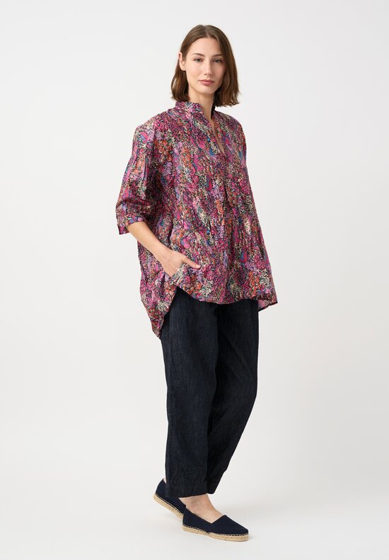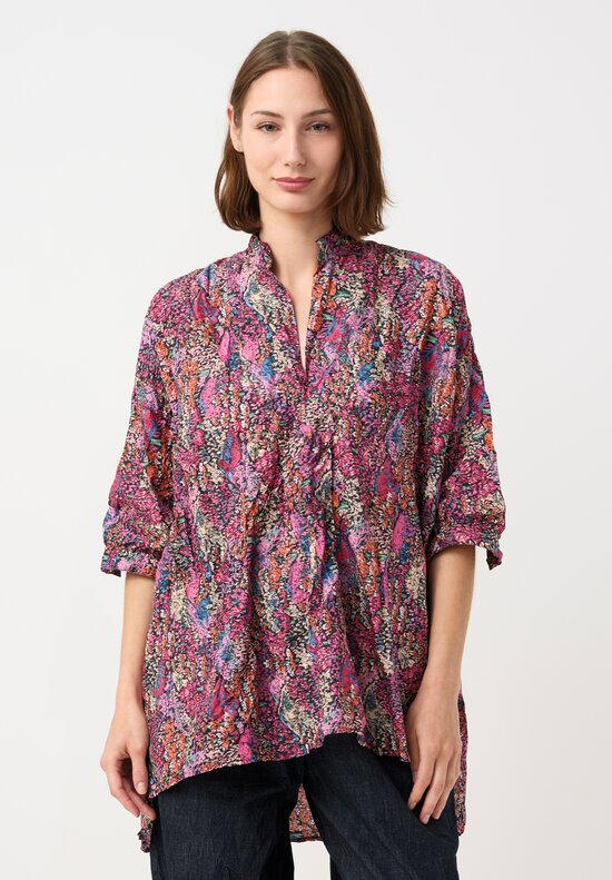 Daniela Gregis Washed Cotton Kora Lungo Estate Tunic in Fuschia Pink Fantasia