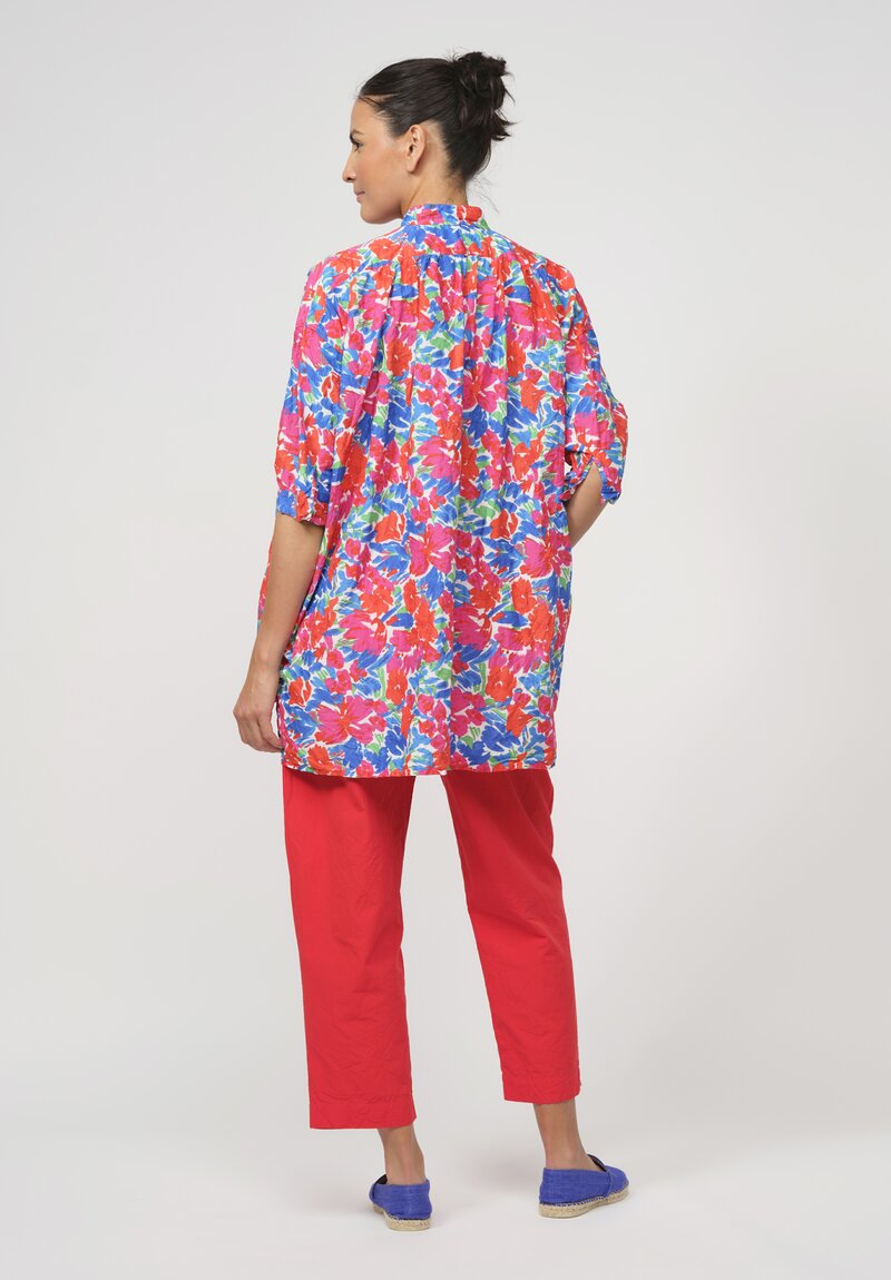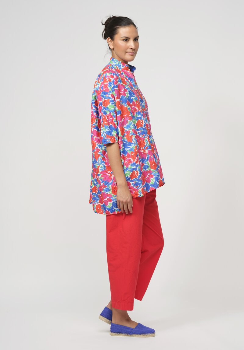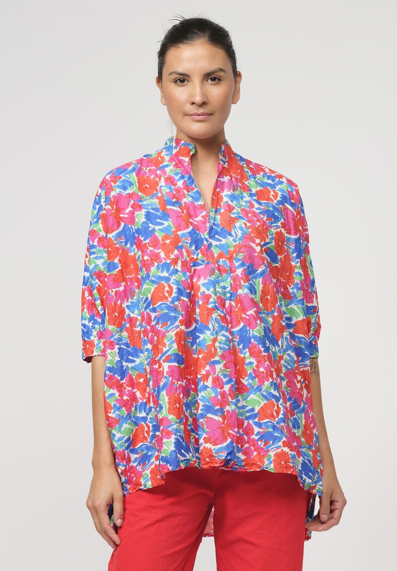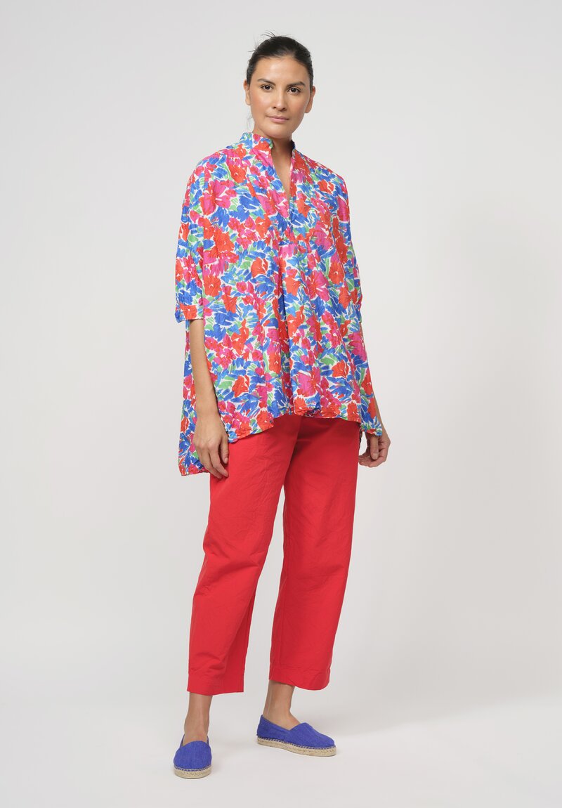 Daniela Gregis Washed Cotton Kora Top in Red & Blue Flowers