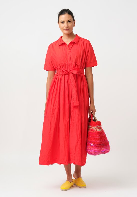 Daniela Gregis Washed Cotton Manichina Dress in Glow Red