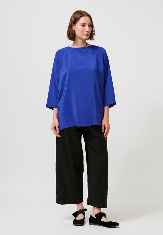 Embracing an updated artisanal country feel, Daniela Gregis features textured, voluminous silhouettes that allow a body to paint, work and play. Her dyeing is made using natural colors with shades that are taken from the most evocative natural landscapes creating an intellectual and soulful look.