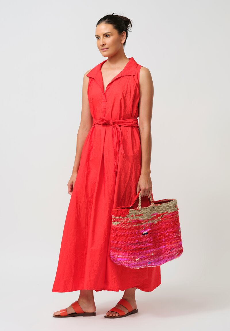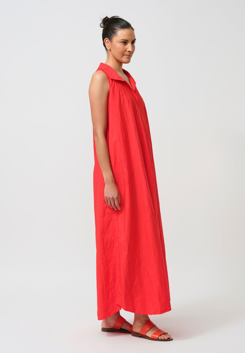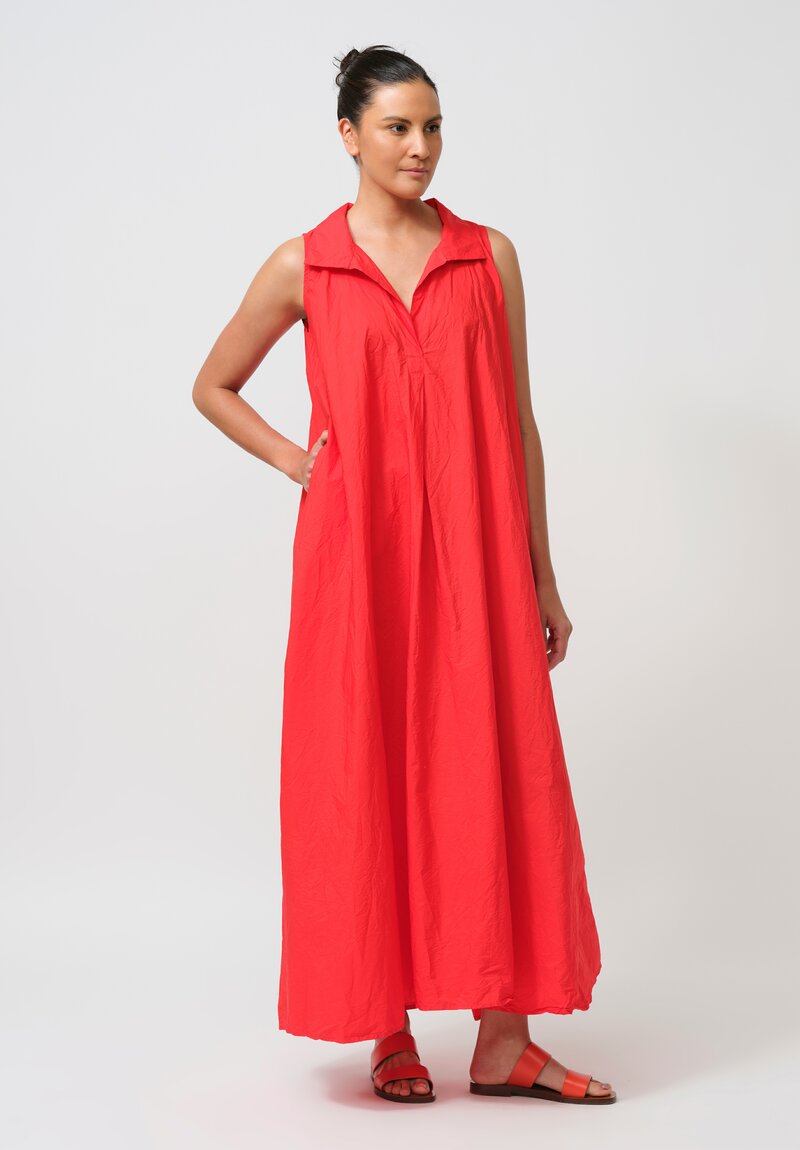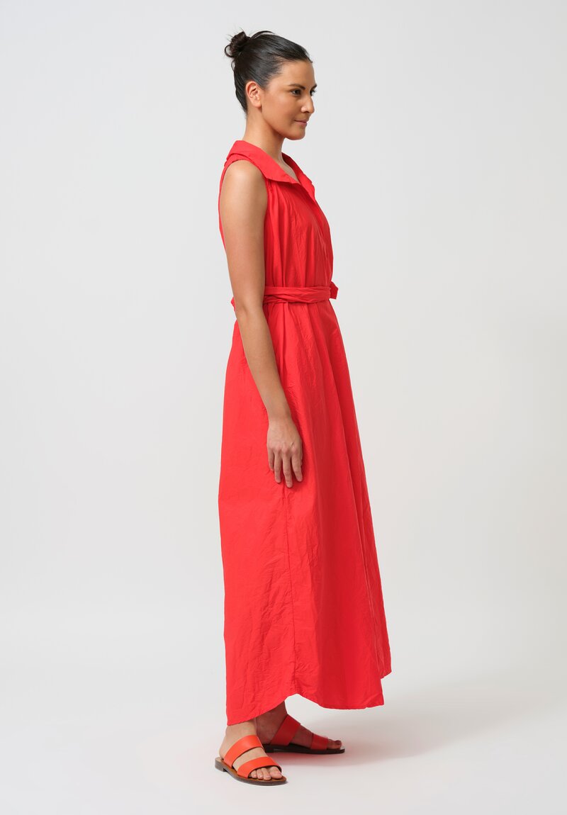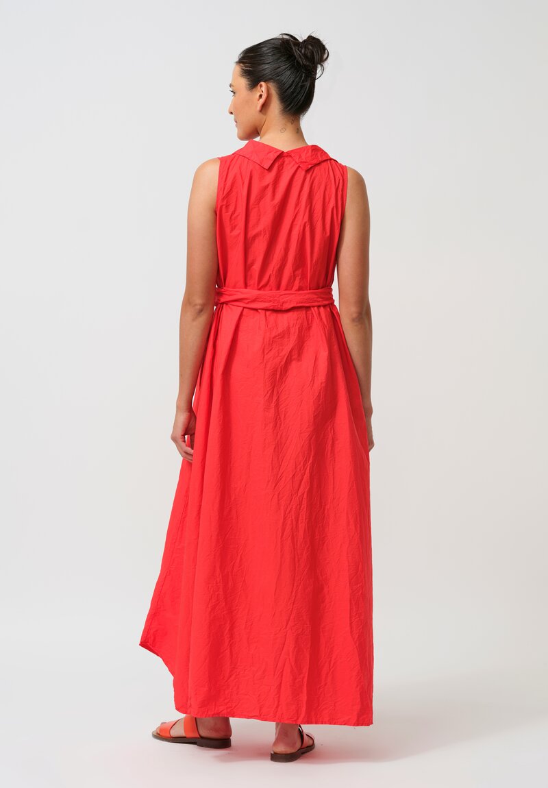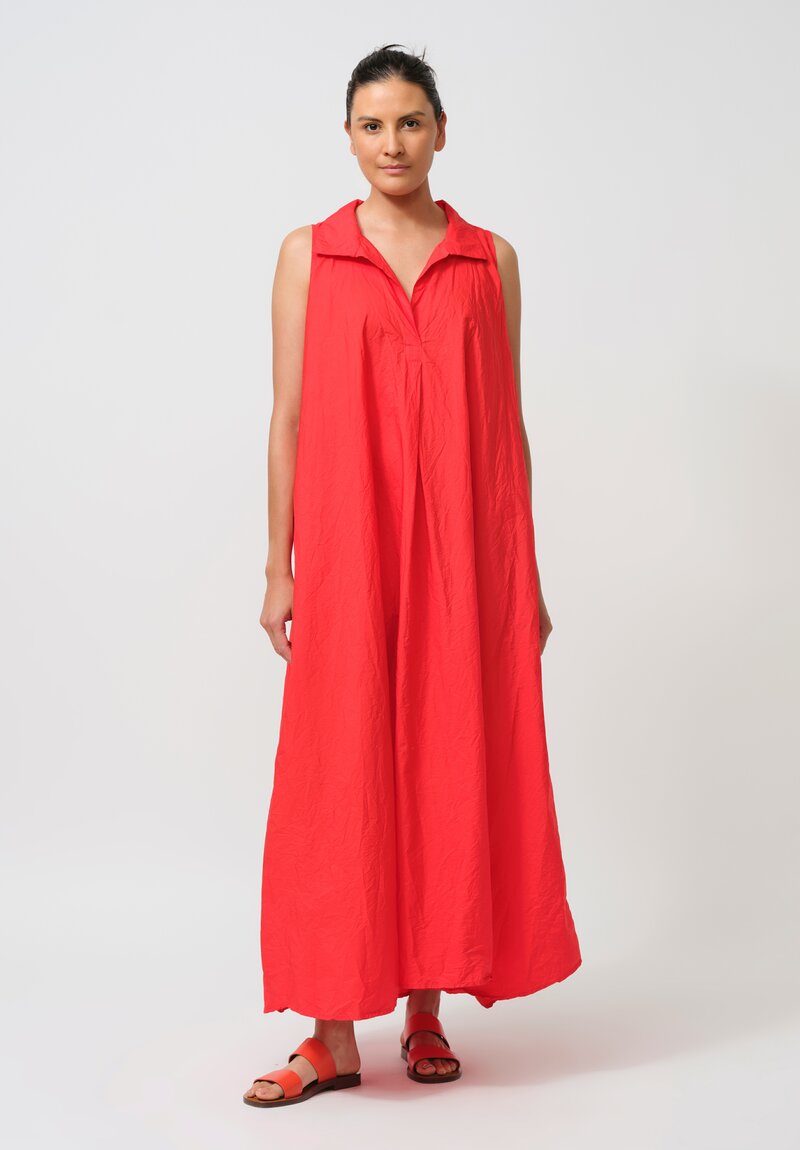 Daniela Gregis Washed Cotton Spicchi Colletto Sleeveless Dress in Red