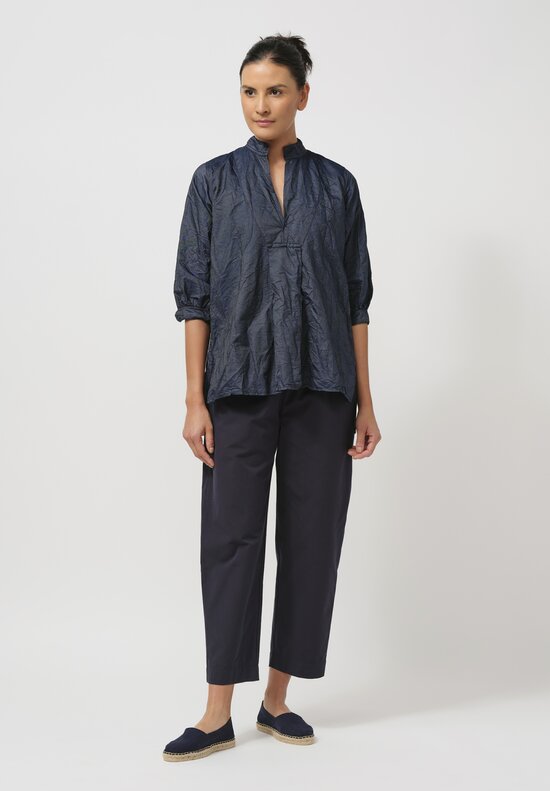 Daniela Gregis Washed Cotton Wide Leg Pigiama Pants in Nero Black