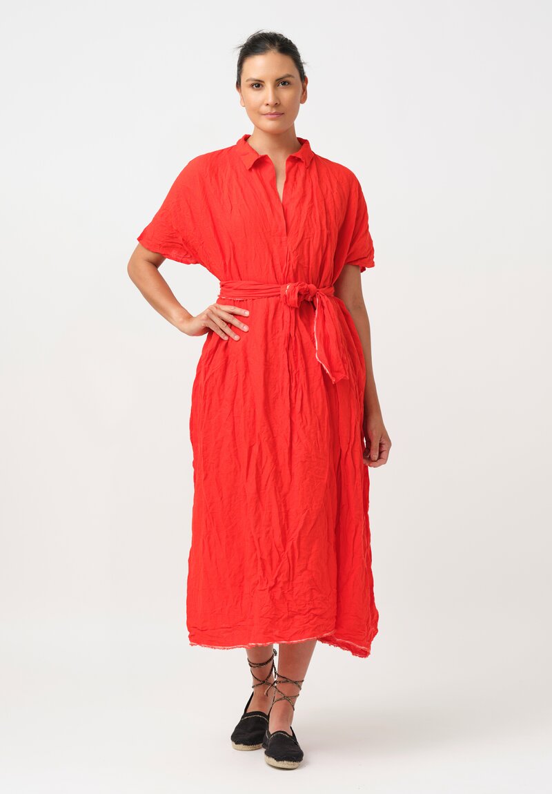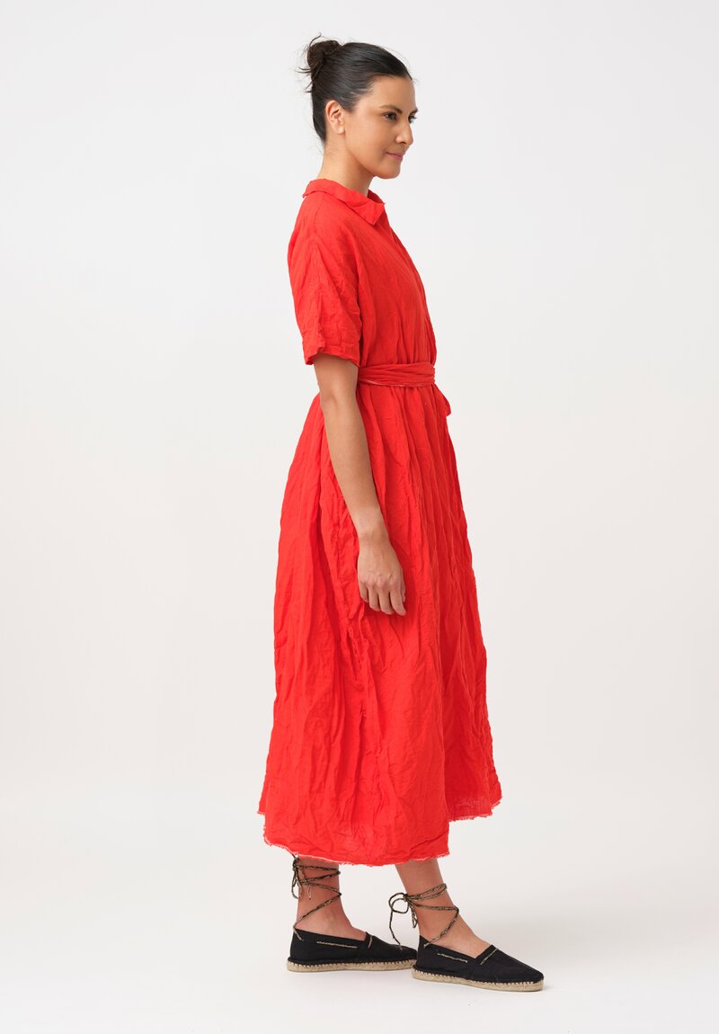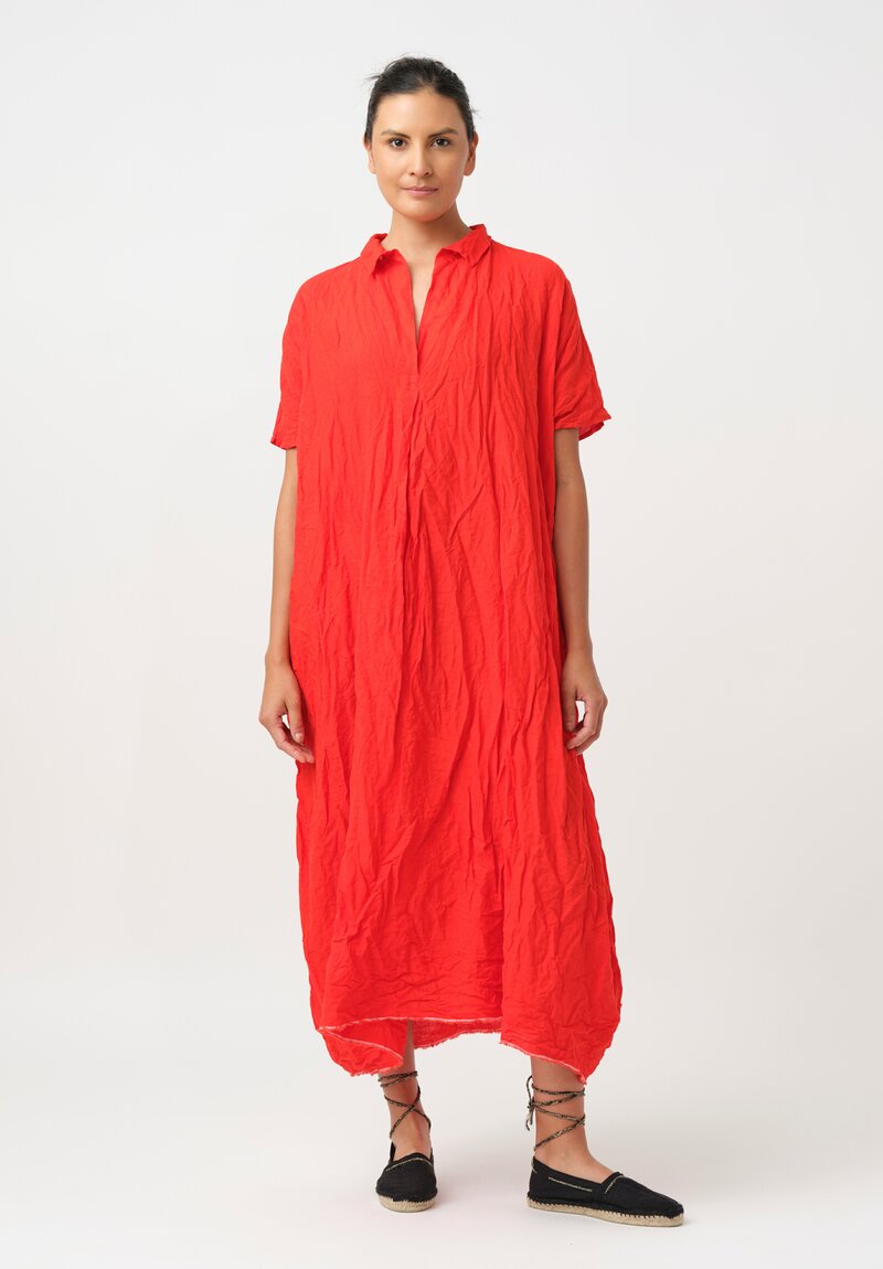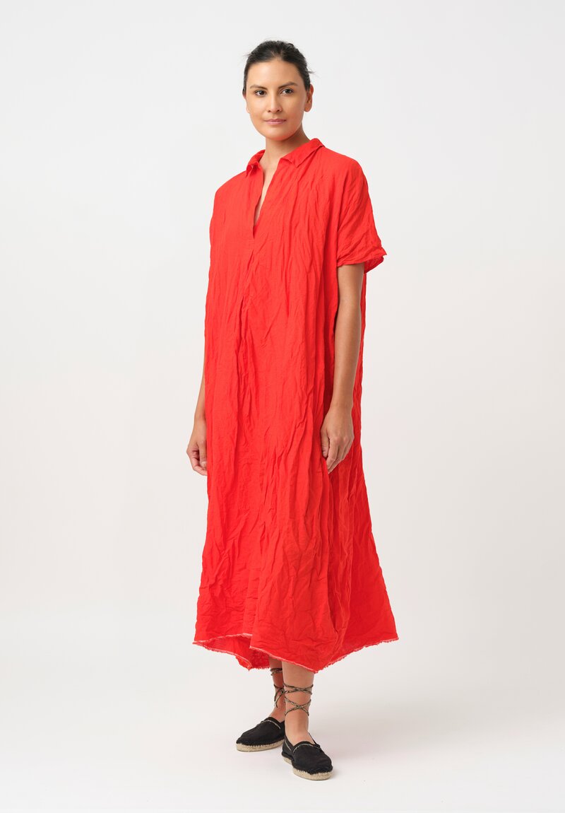 Daniela Gregis Washed Linen Manichina Dress in Arancio Red