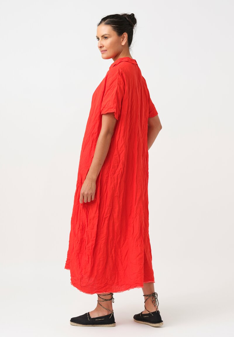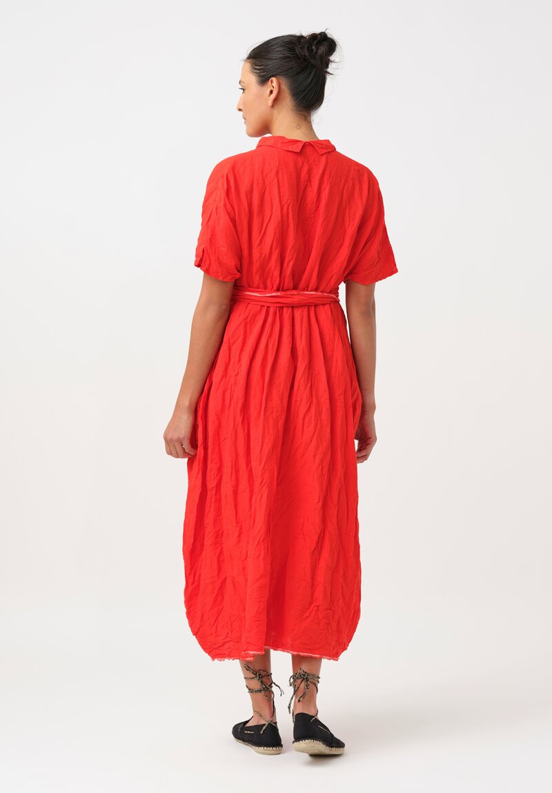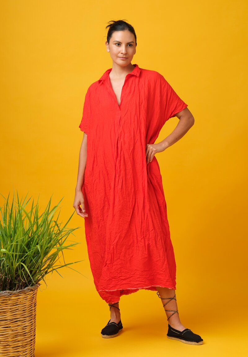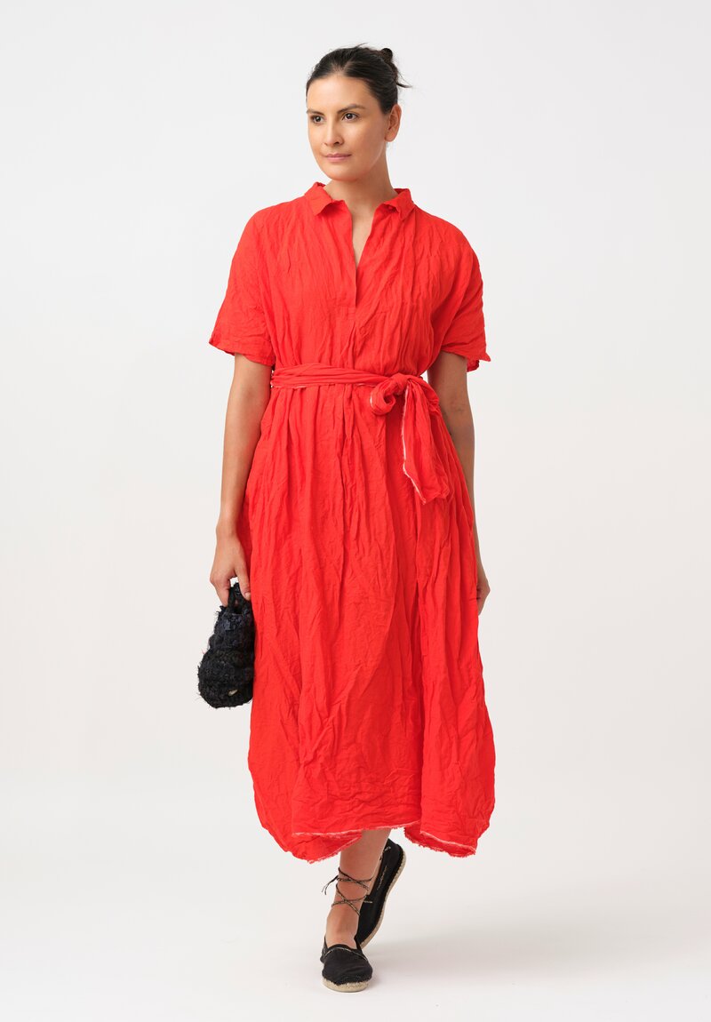 Daniela Gregis Washed Linen Manichina Dress in Arancio Red