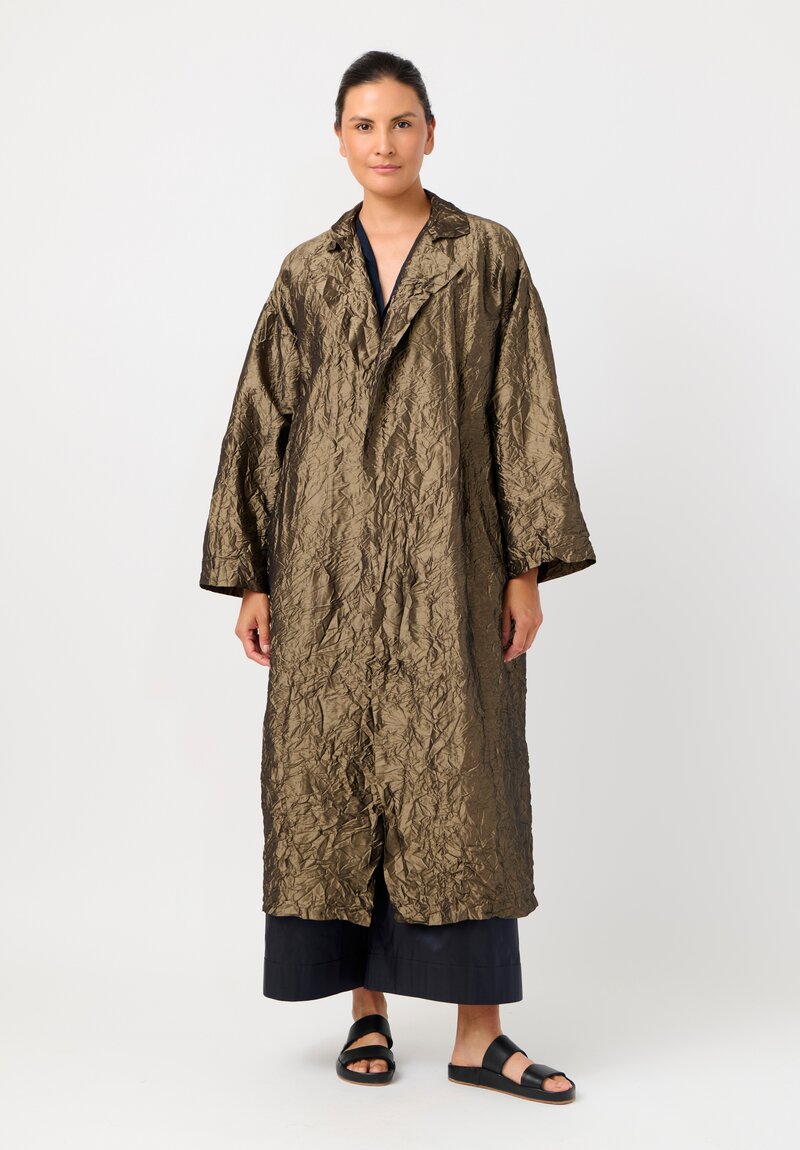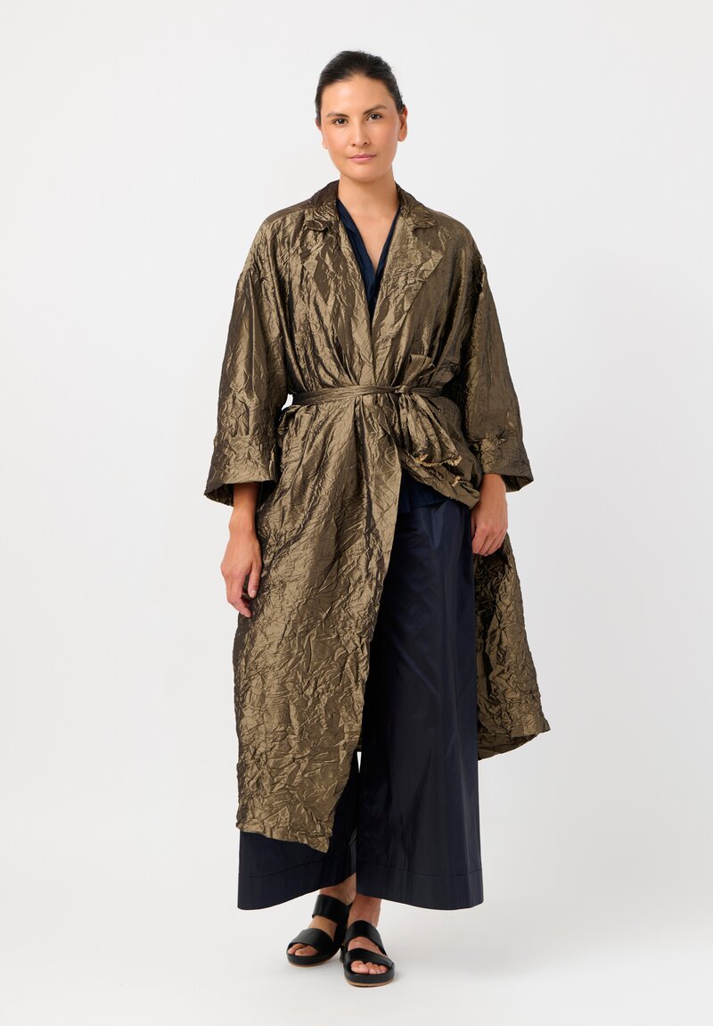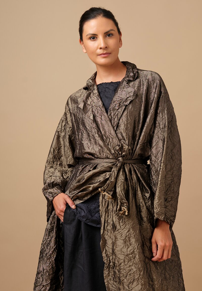 Daniela Gregis Washed Silk Randa Lungo Coat in Bronze Brown