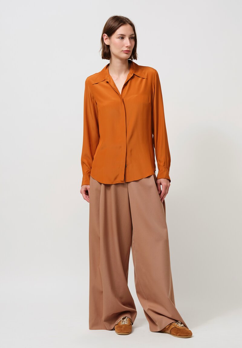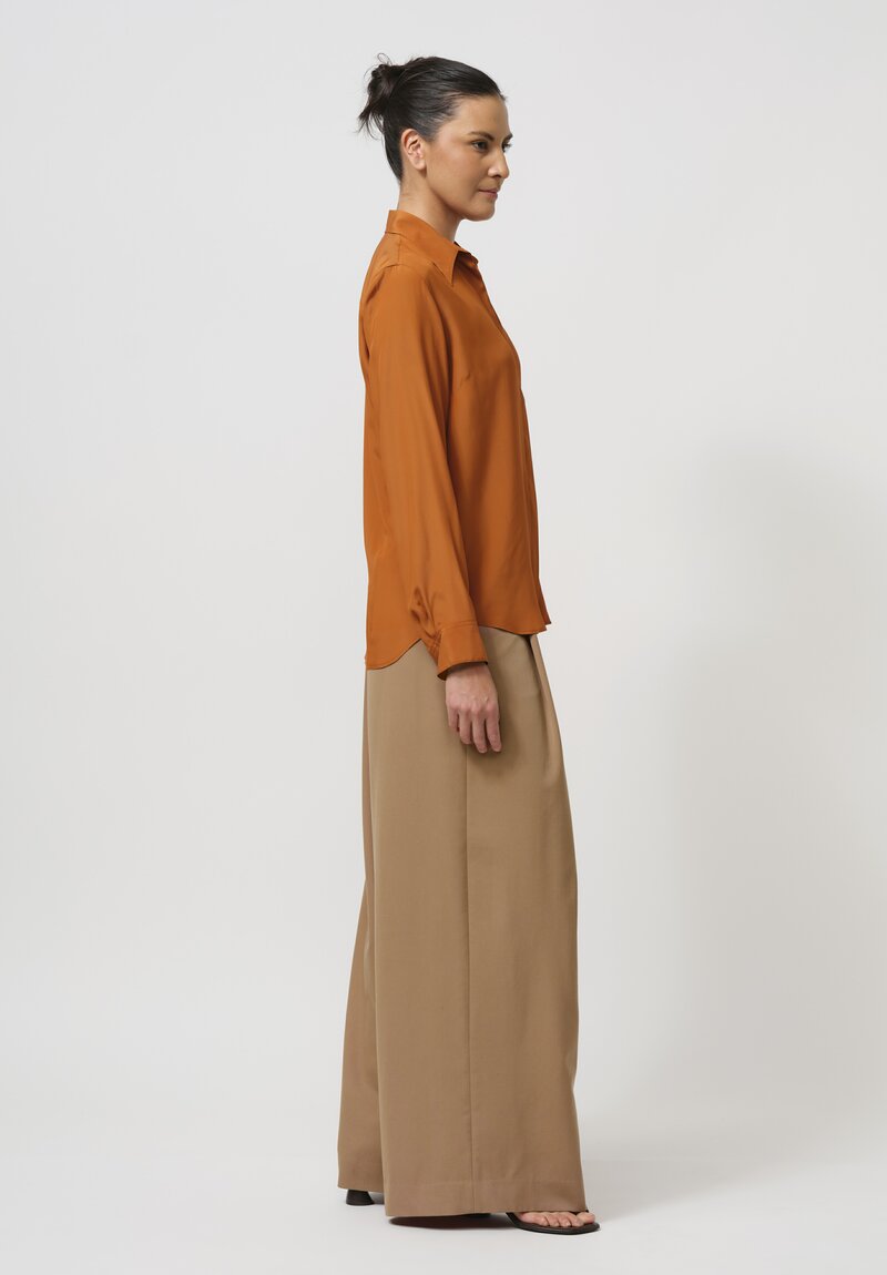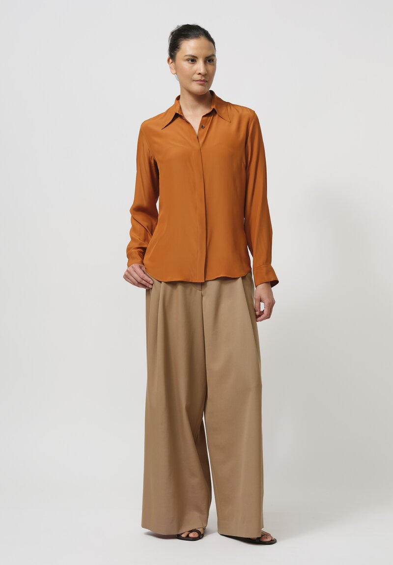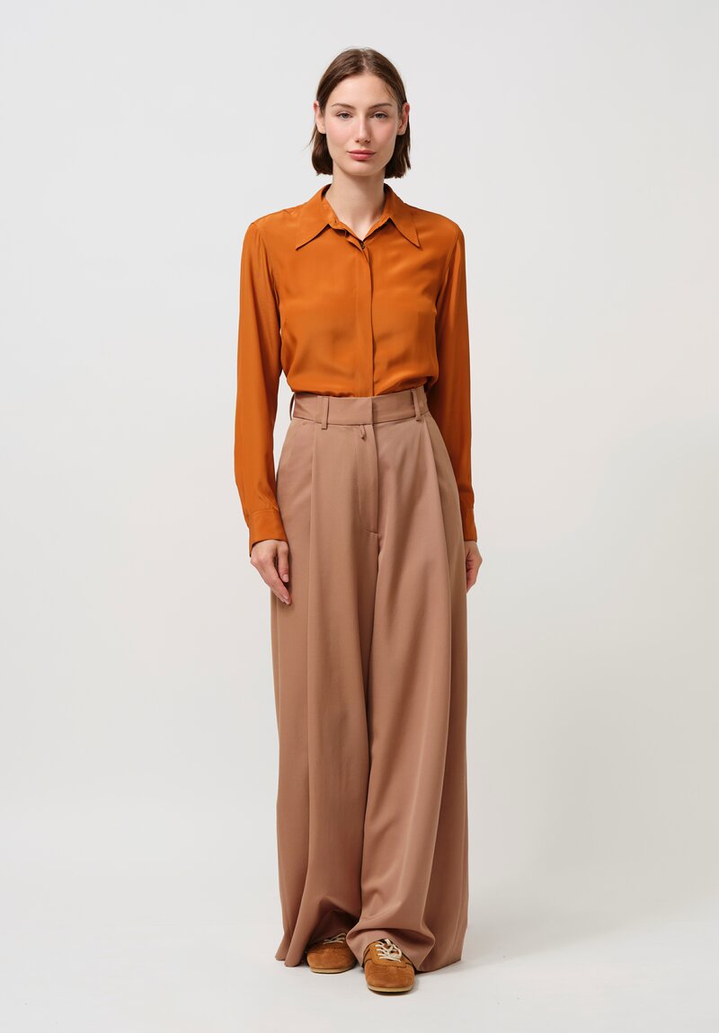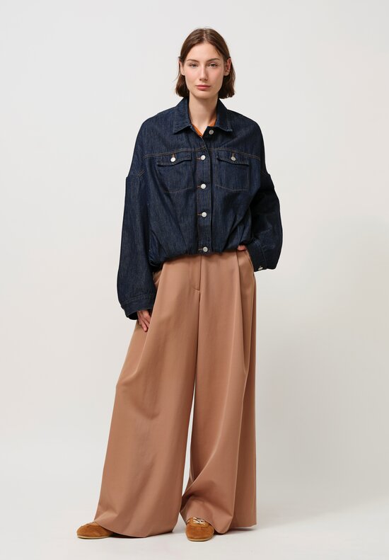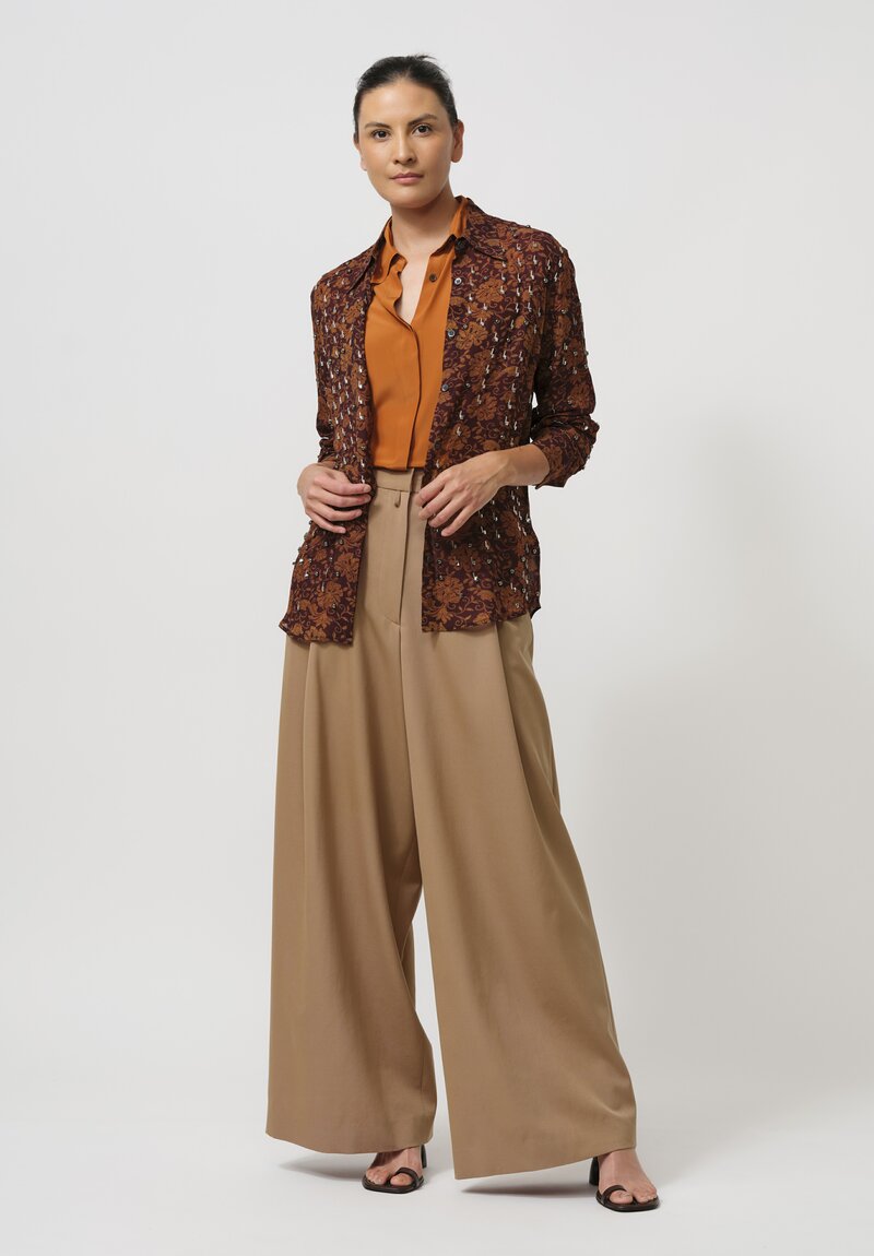 Dries Van Noten Wool Wide Leg Podium Pants in Camel Brown