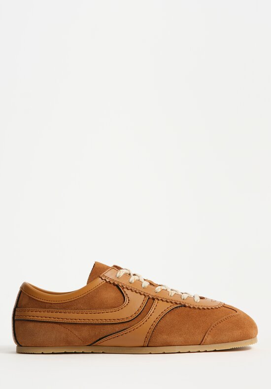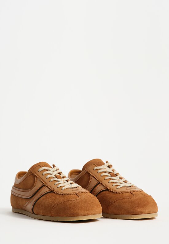 Dries Van Noten Leather Trimmed Suede Sneakers in Tan