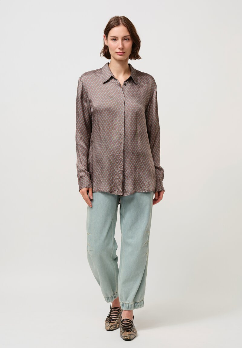 Dries Van Noten Clavel Tris Shirt in Mauve Brown & Blue Spots