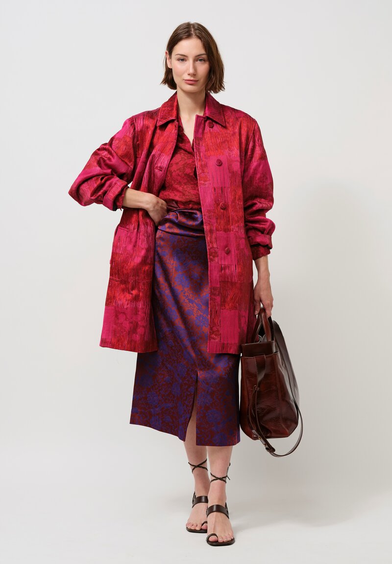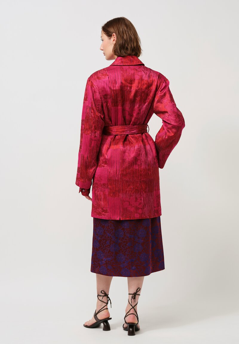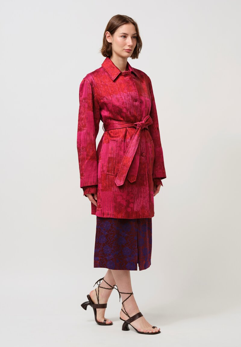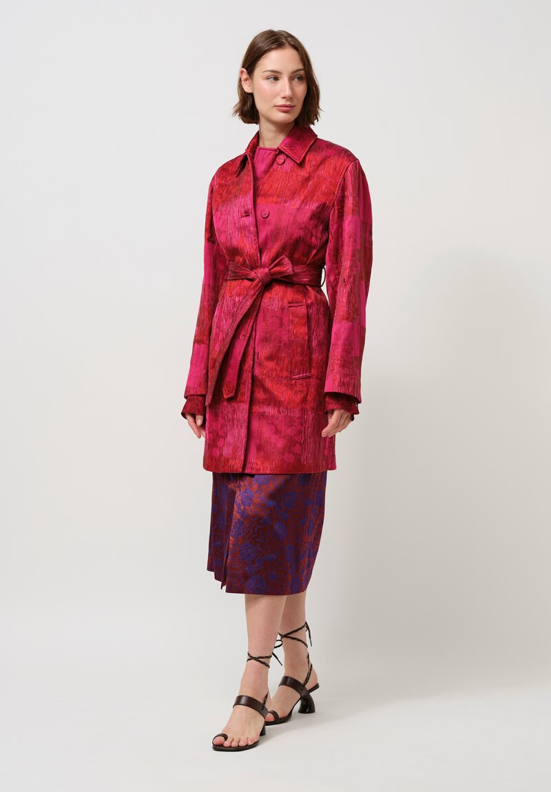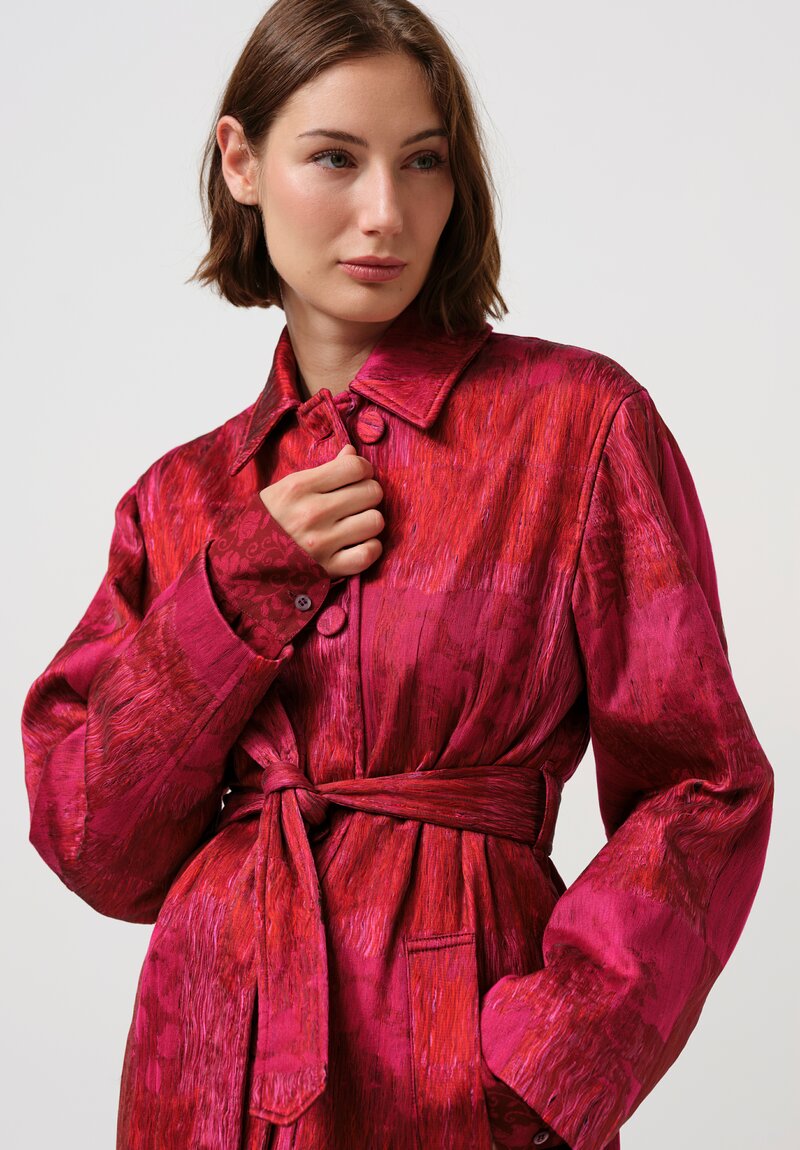 Dries Van Noten Cotton Jacquard Ramblas Coat in Crimson & Scarlet