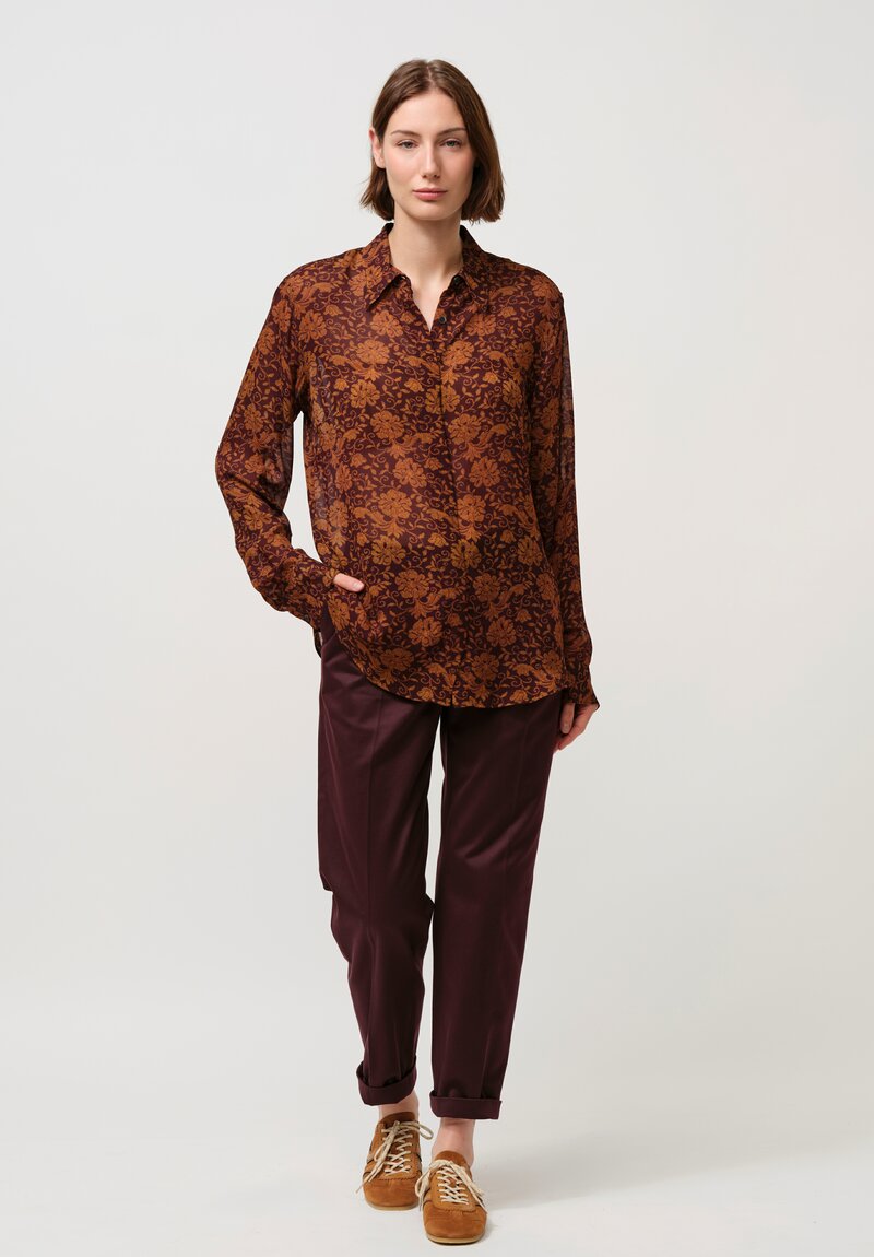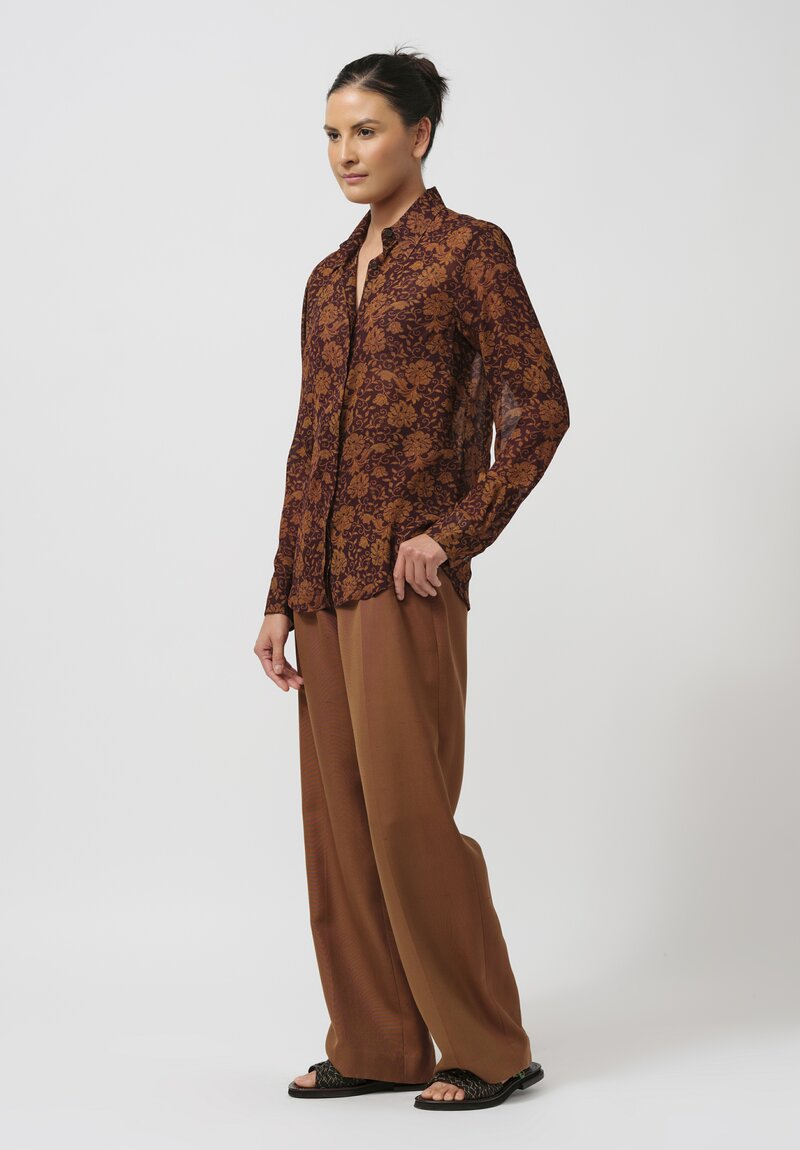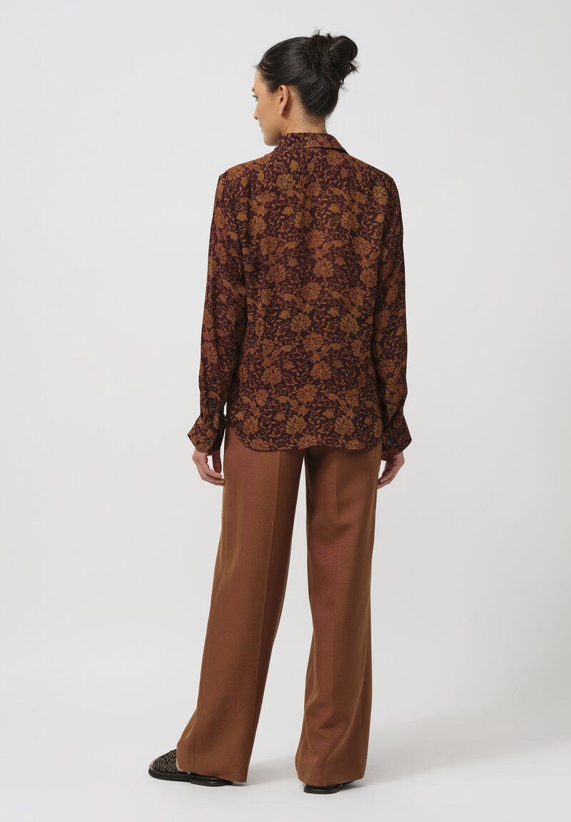 Dries Van Noten Floral Jacquard Chowy Shirt in Sepia & Burgundy