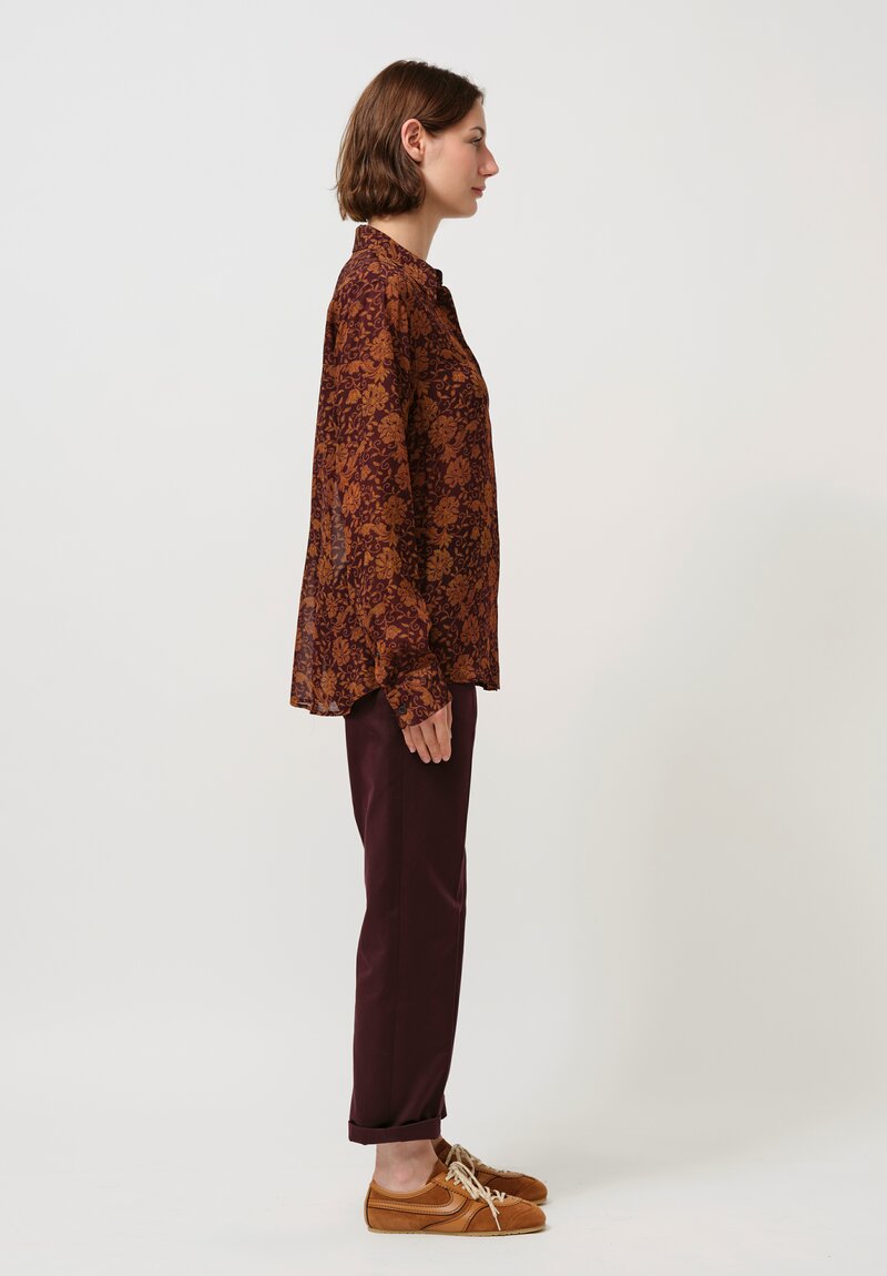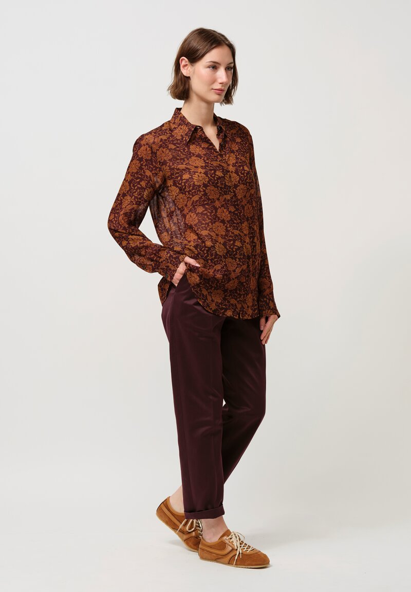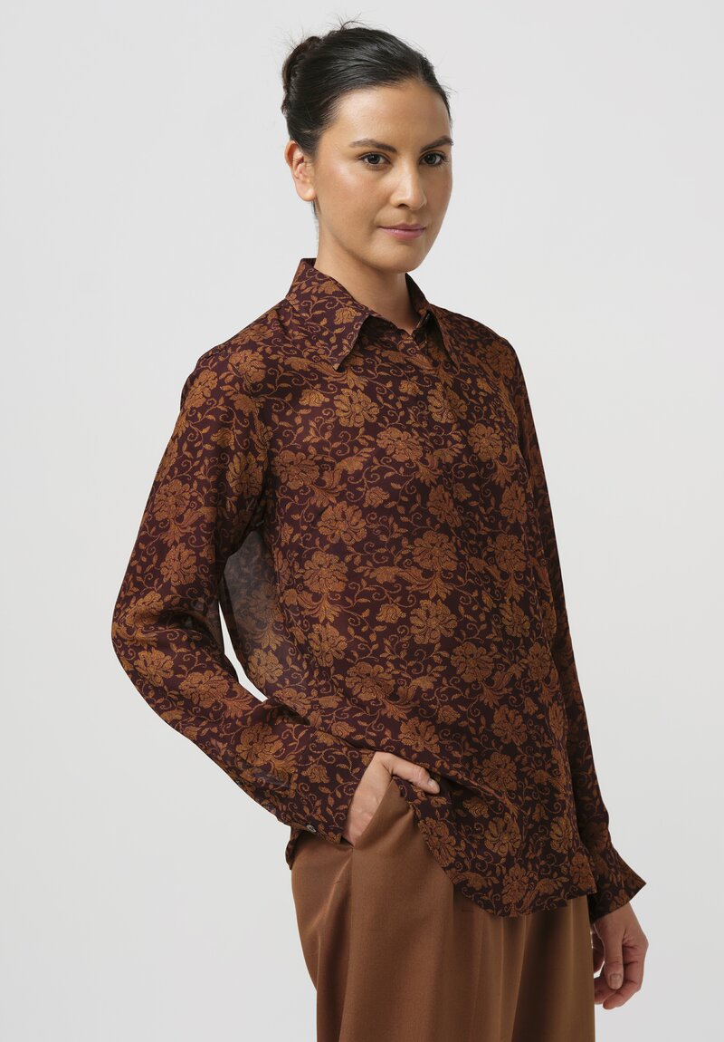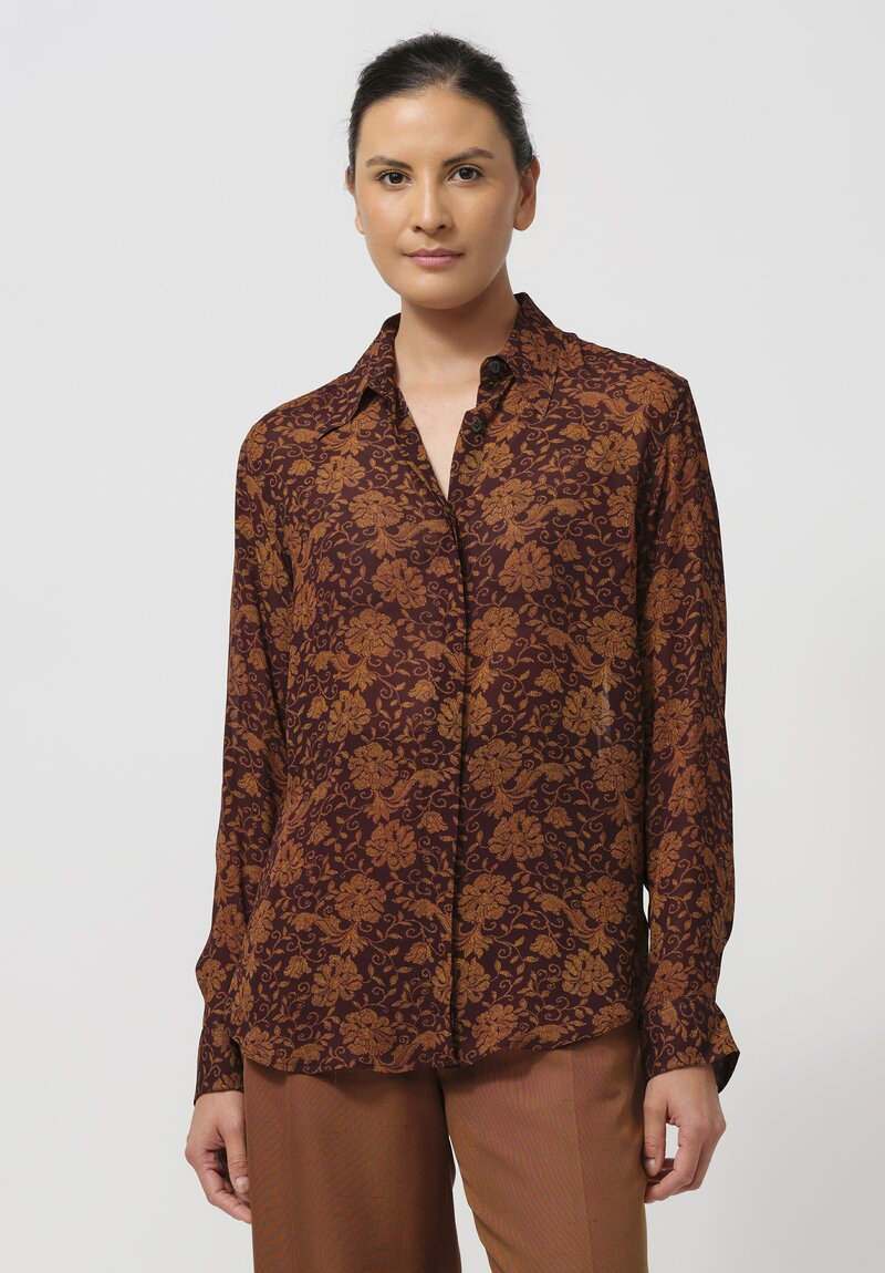 Floral Jacquard Chowy Shirt in Sepia & Burgundy