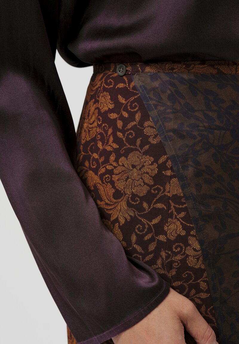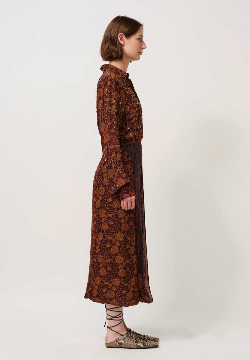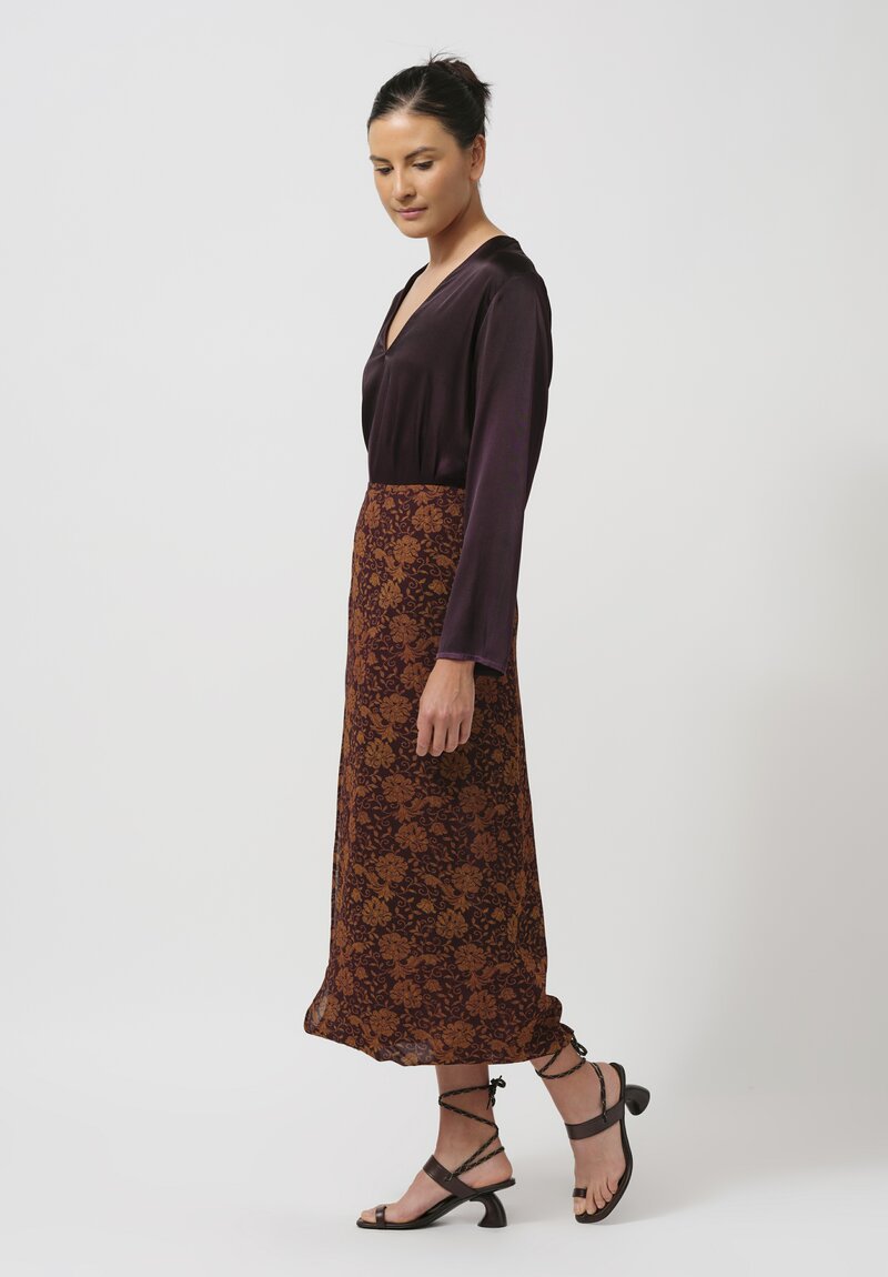 Dries Van Noten Floral Jacquard Spa Skirt in Sepia & Burgundy