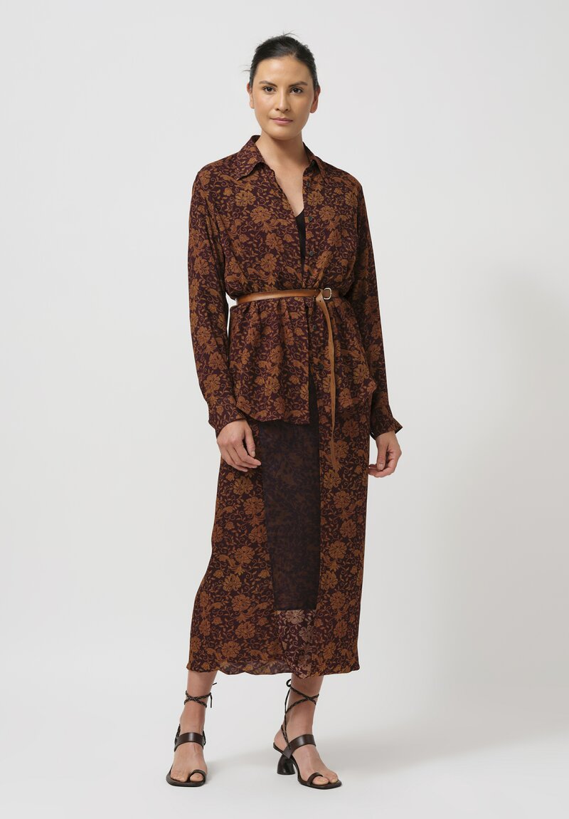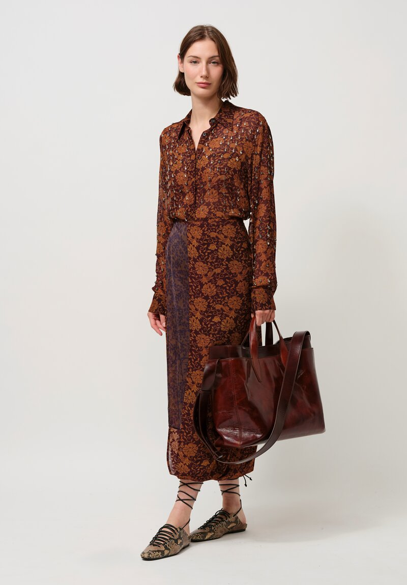 • Dries Van Noten Floral Jacquard Chowy Shirt in Sepia & Burgundy