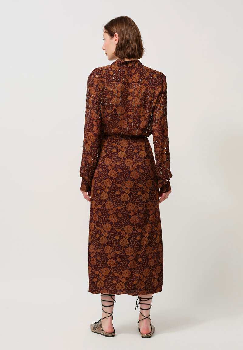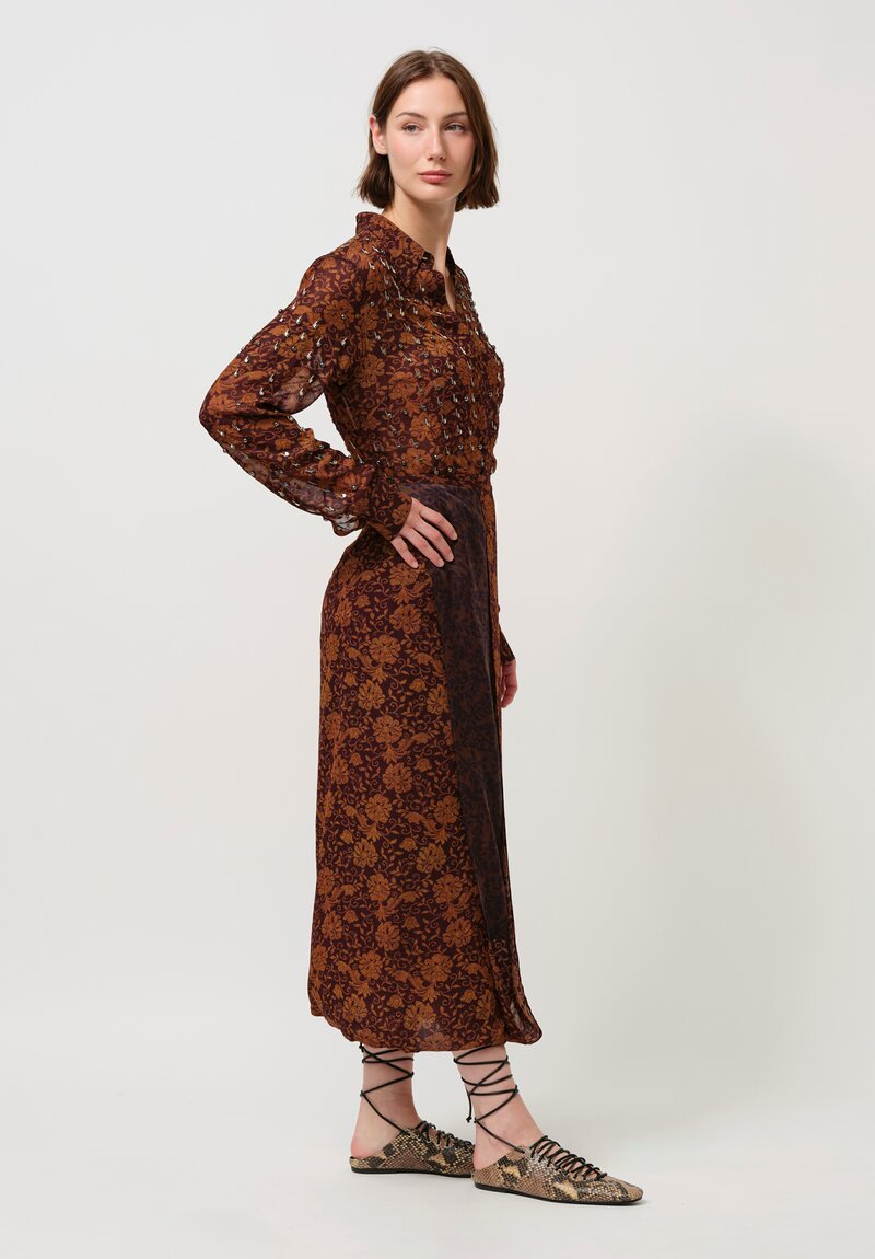 • Dries Van Noten Floral Jacquard Embellished Shirt in Sepia & Burgundy