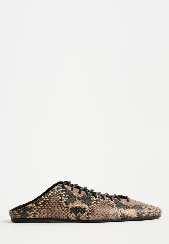 • Dries Van Noten Calfskin Leather Lace-Up Flats in Snakeskin