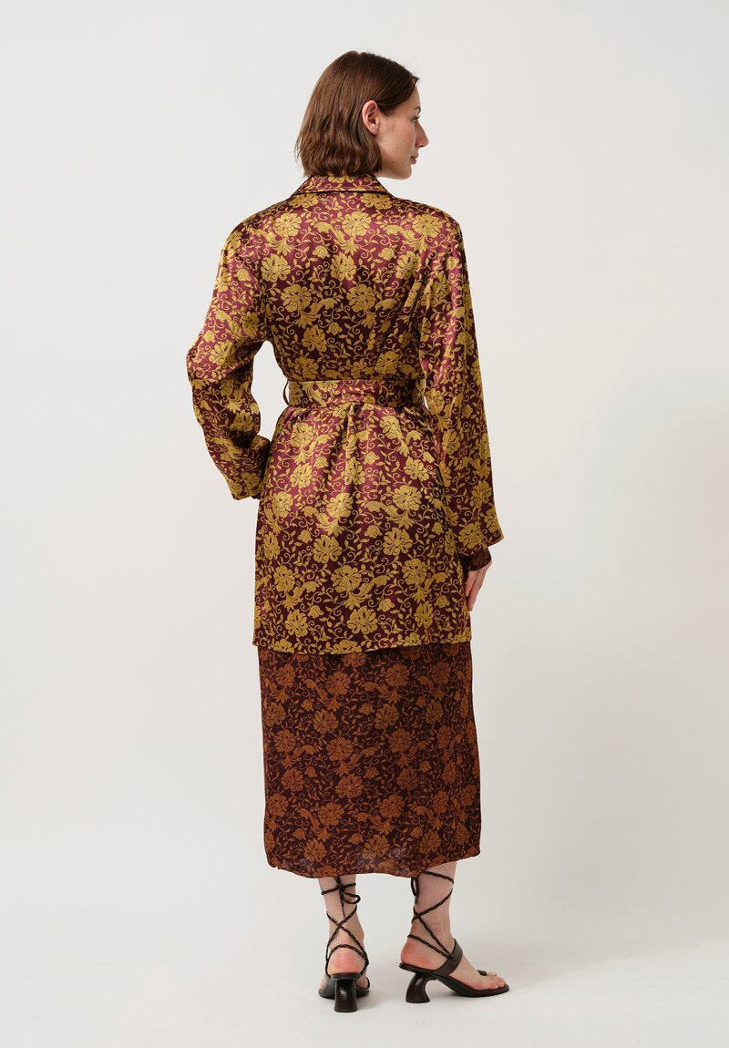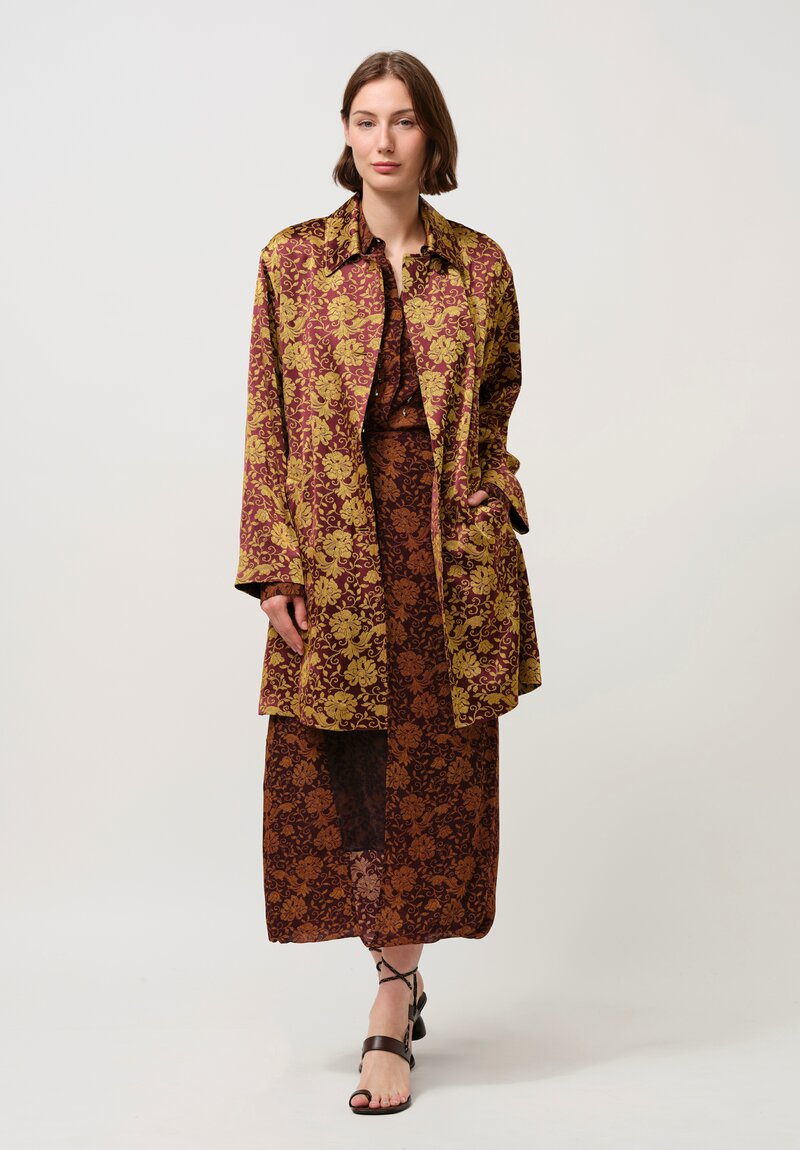 Dries Van Noten Jacquard Ramblas Coat in Ochre & Burgundy