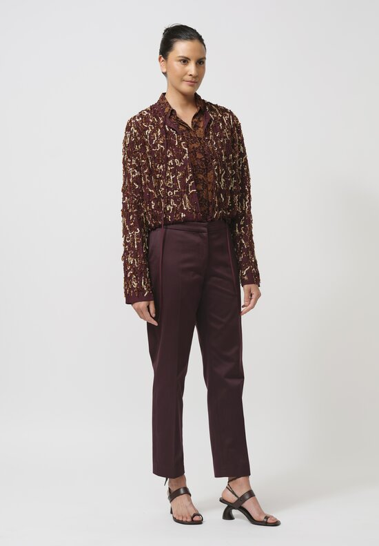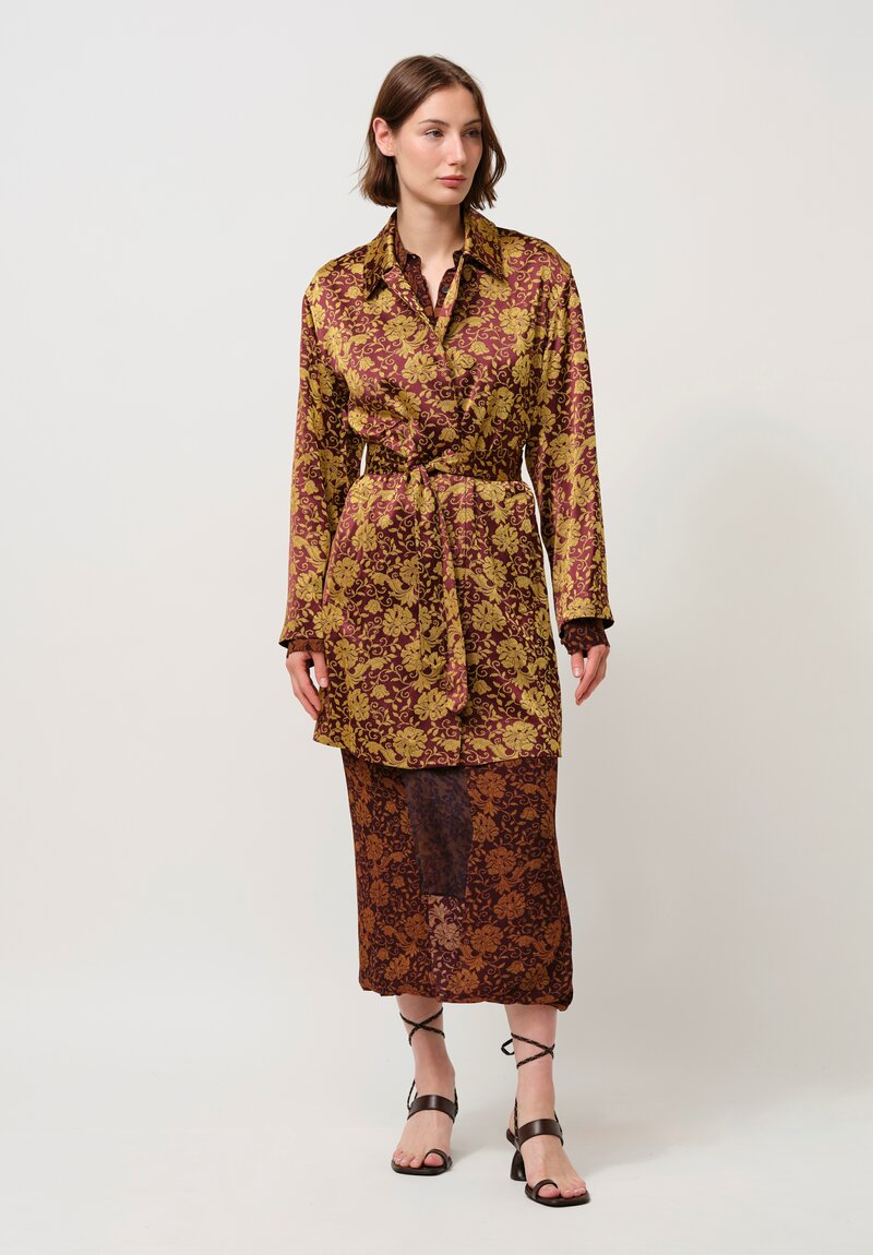 • Dries Van Noten Floral Jacquard Chowy Shirt in Sepia & Burgundy