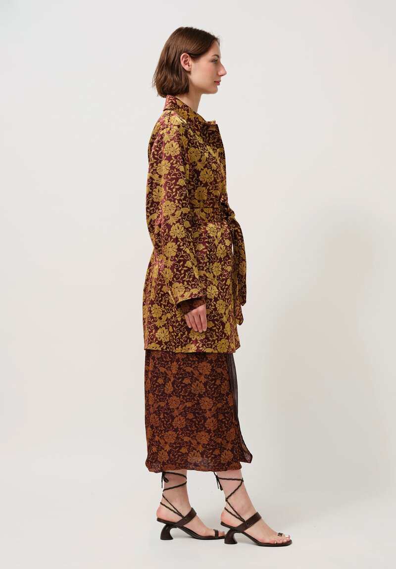 Jacquard Ramblas Coat in Ochre & Burgundy