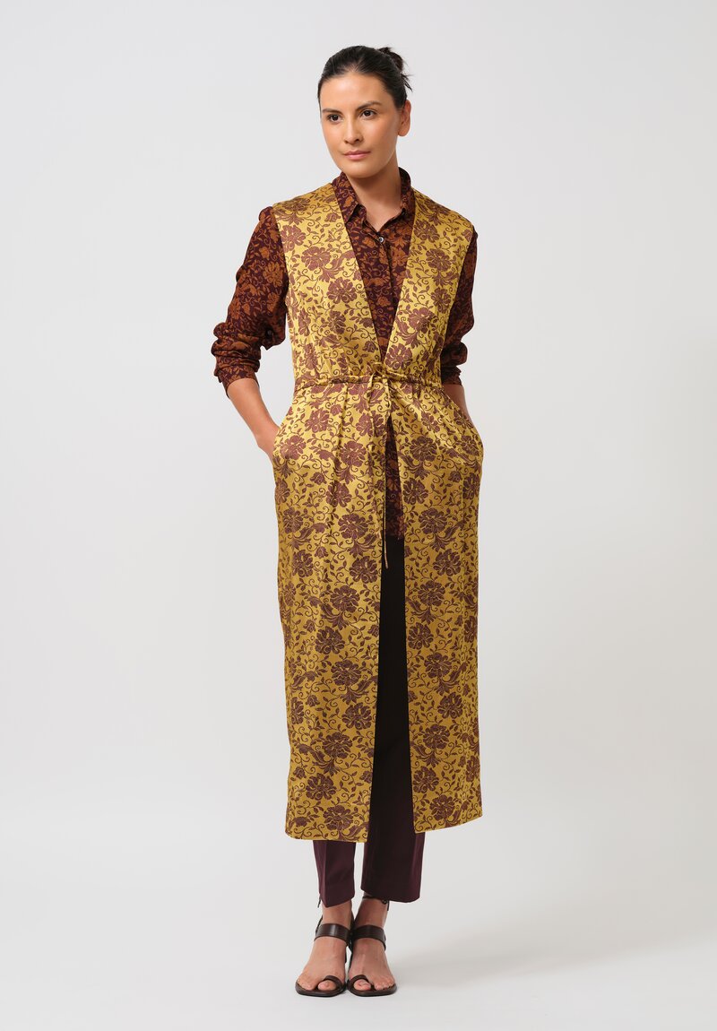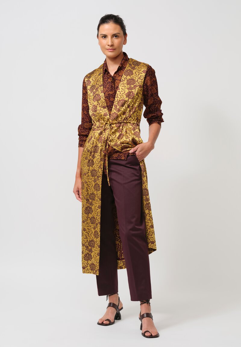 Dries Van Noten Jacquard Romina Coat in Ochre & Burgundy