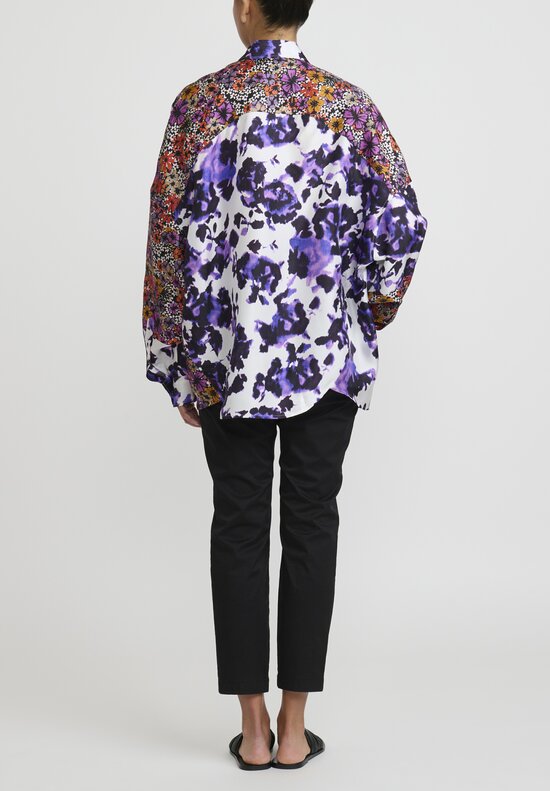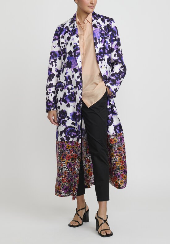 Dries Van Noten Silk Abstract Floral Rolta Coat in Orange & Purple Multicolor