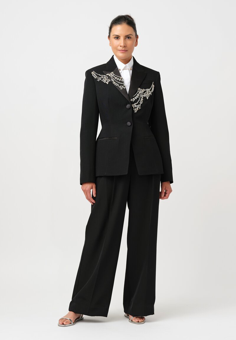 Erdem Crystal Embroidered Single Breasted Blazer in Black