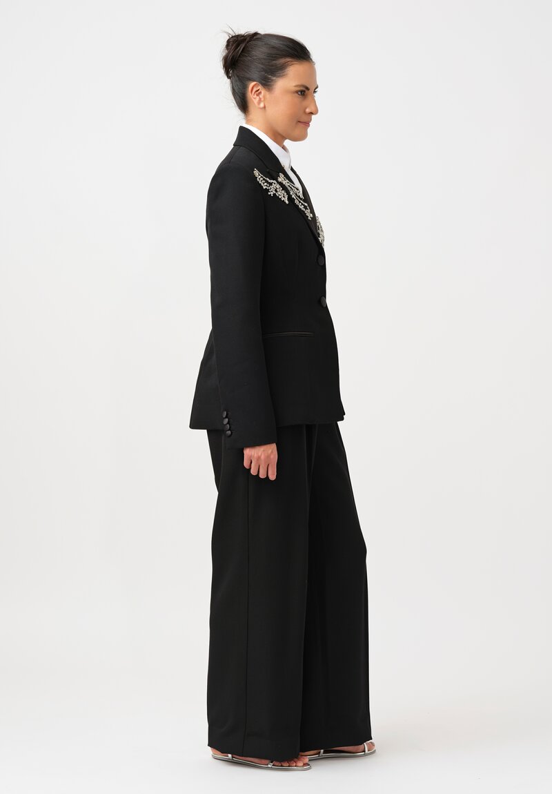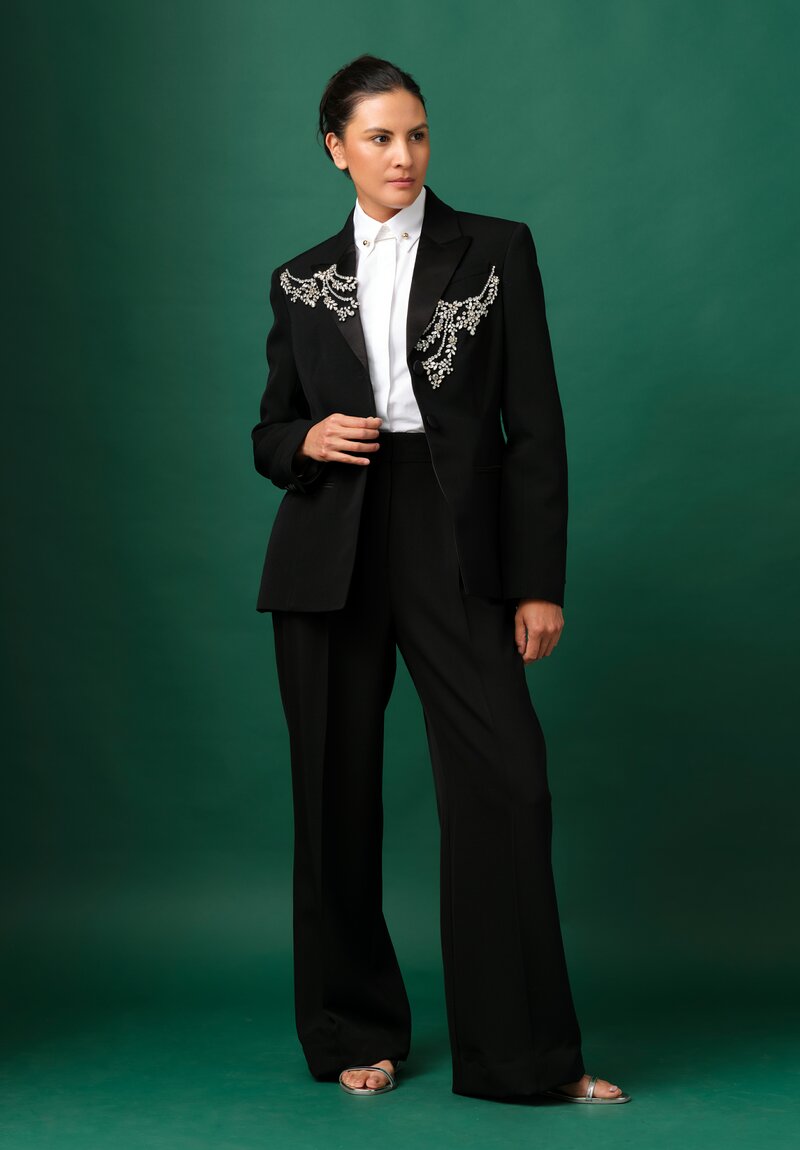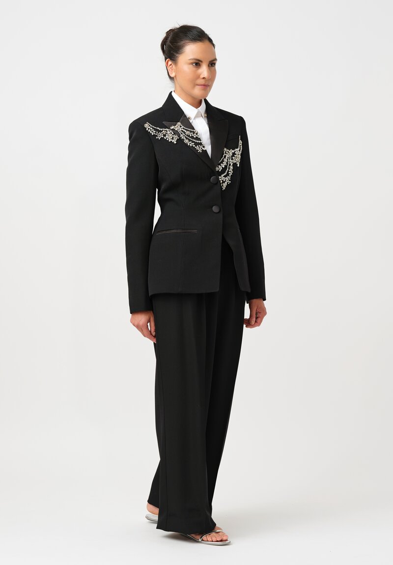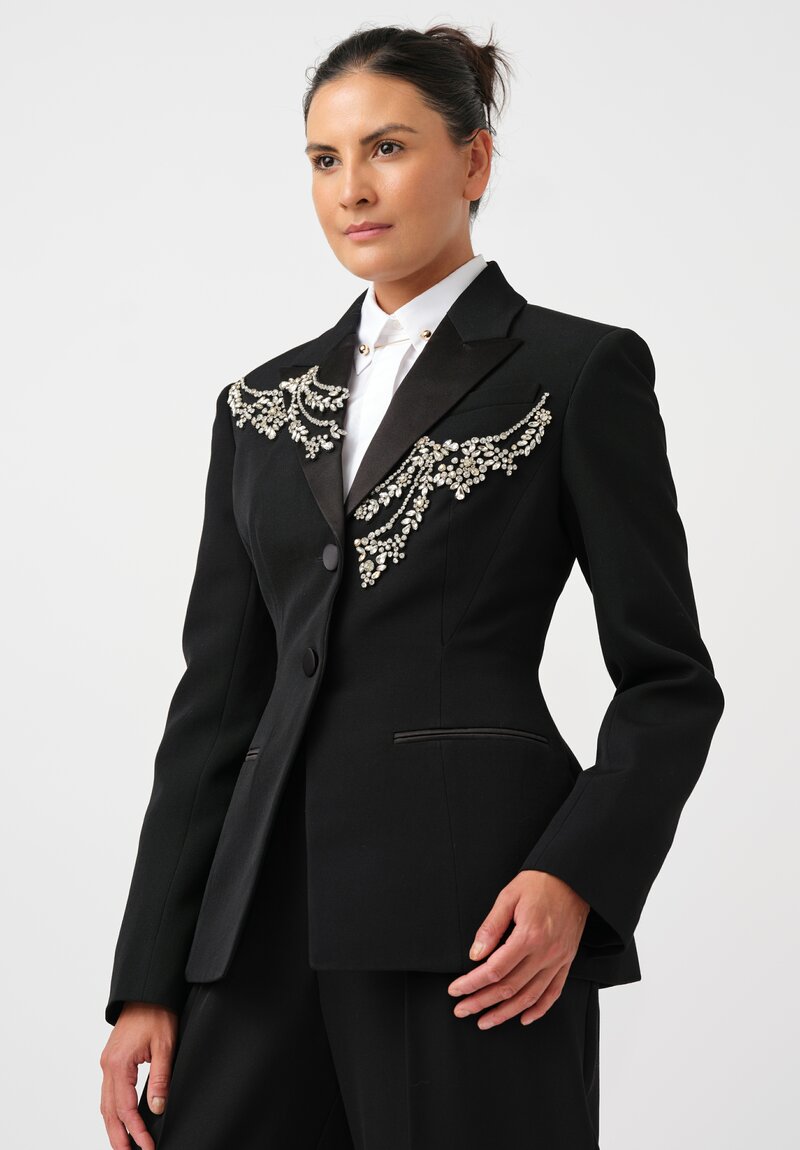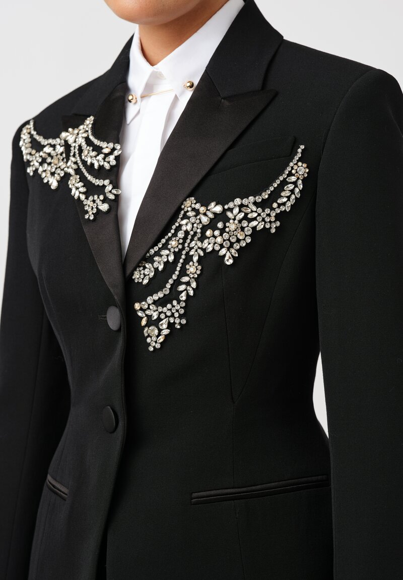 • Embroidered Crystal Embellishments at Lapel & Chest