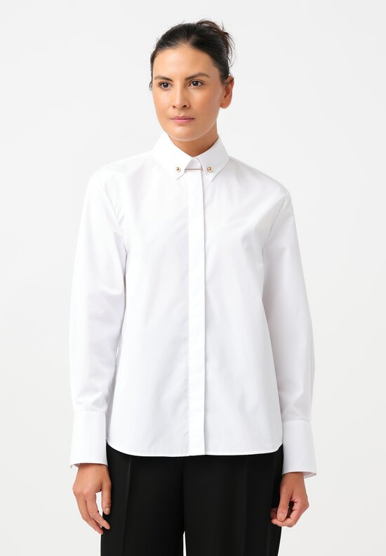 • Erdem Cotton Poplin Button-Down Shirt with Barbell Pierced Collar