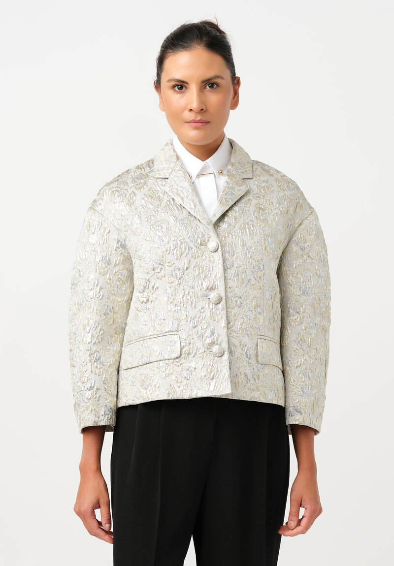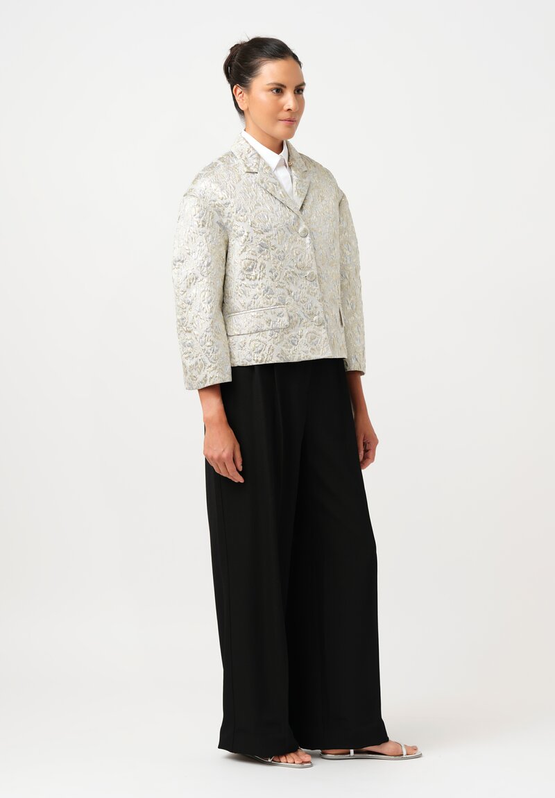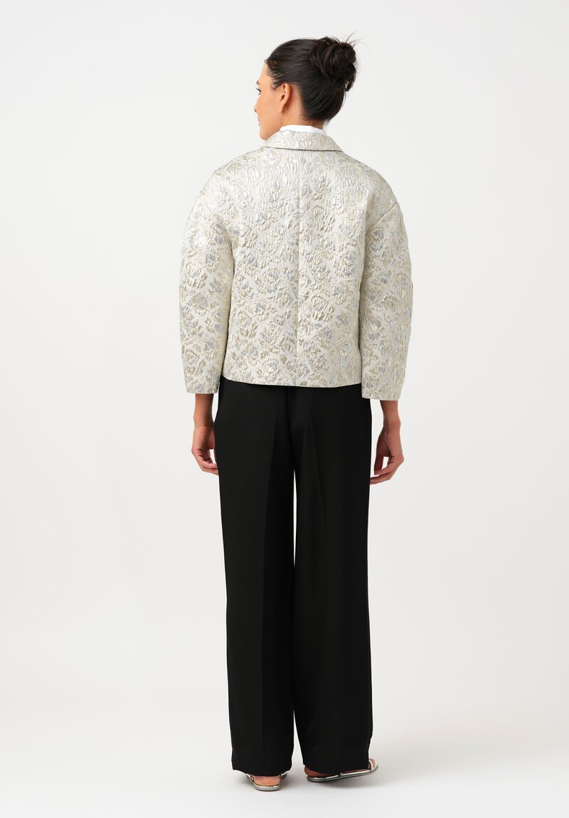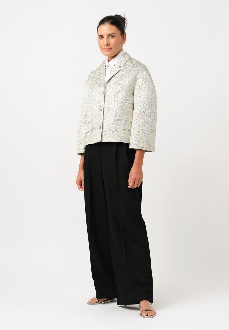 Erdem Single Breasted Cropped Jacket in Metallic Botanics