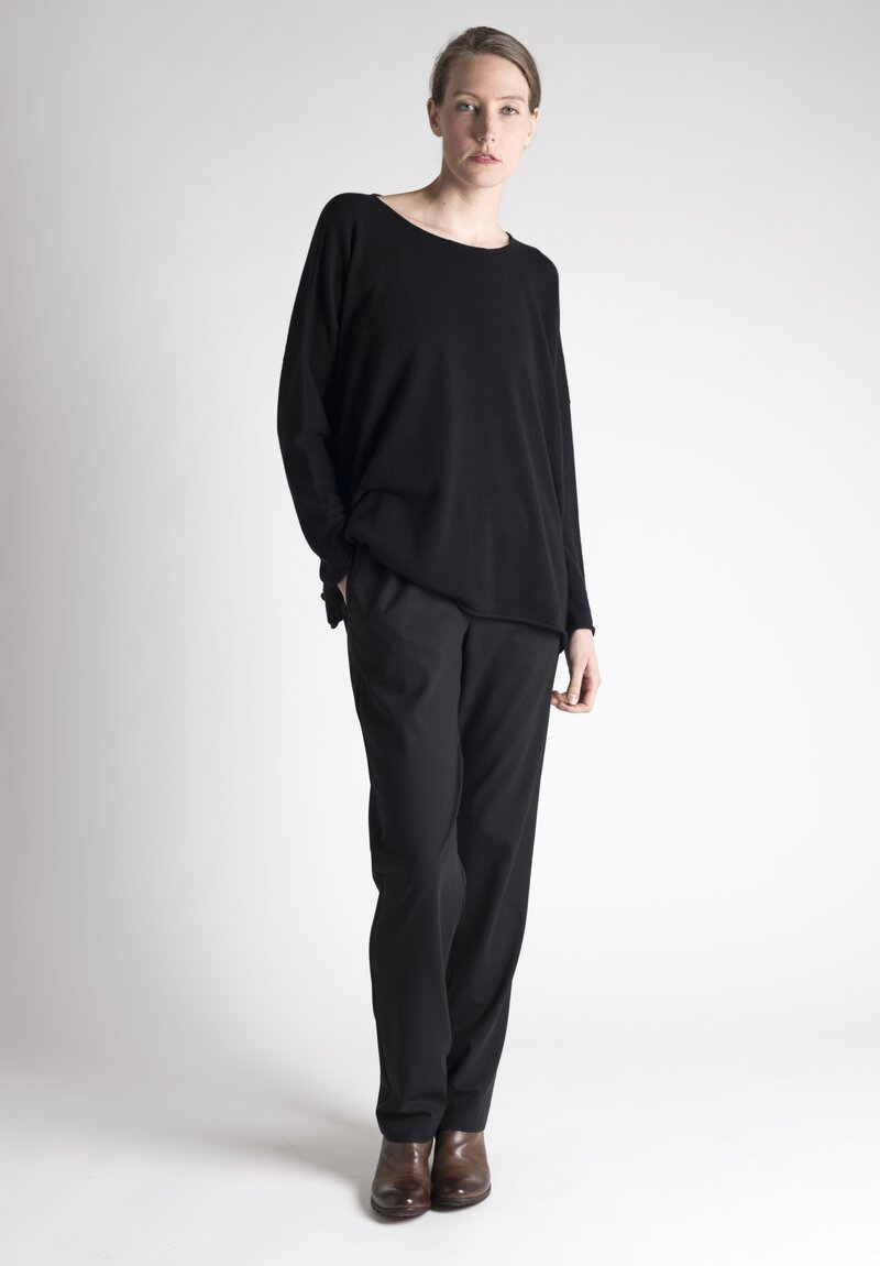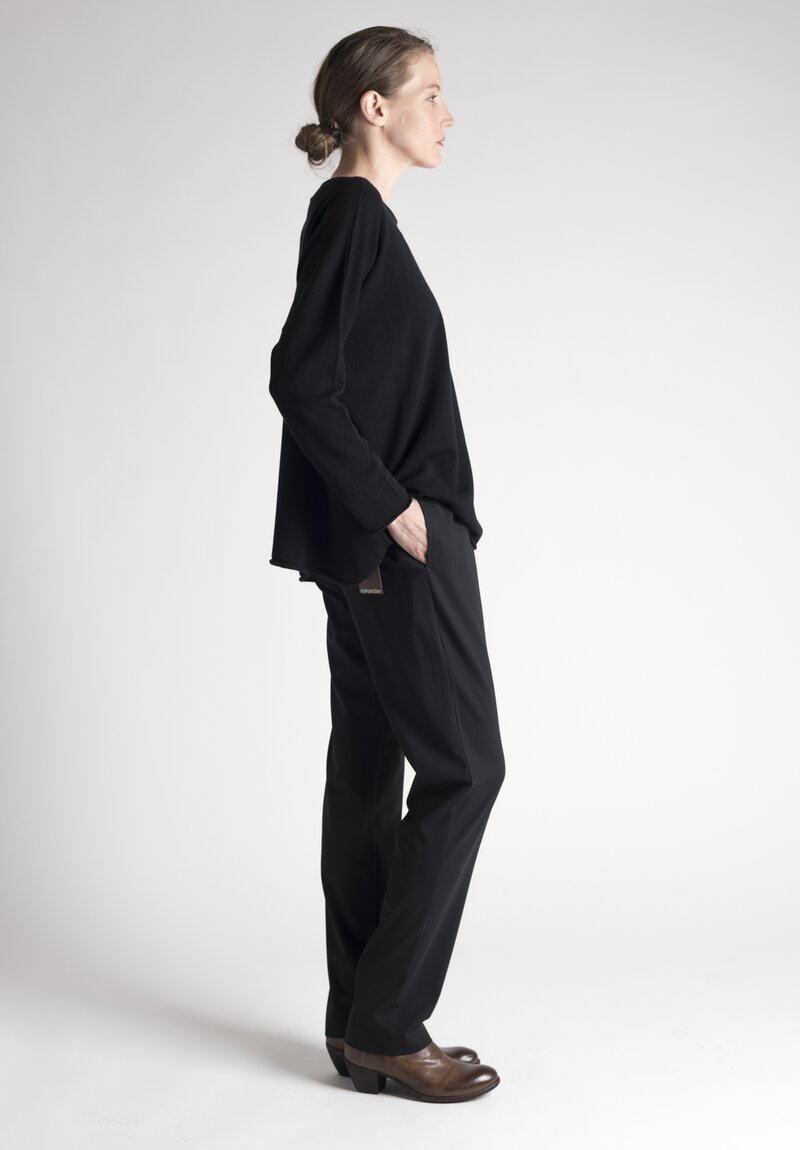 Eskandar Lightweight Stretch Narrow Wool Trouser in Black