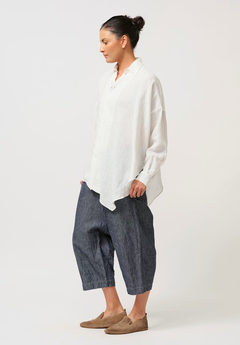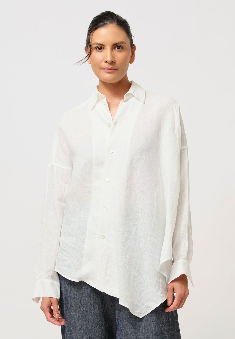 Forme d'Expression Linen Long-Sleeve Asymmetric Shirt in White