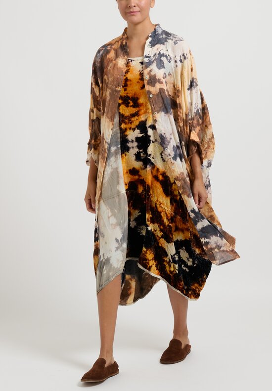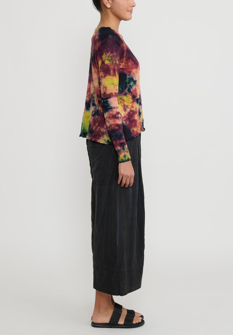Gilda Midani ''Cosmic'' Dyed Long Sleeve Trapeze Tee in Brown & Kaki Yellow